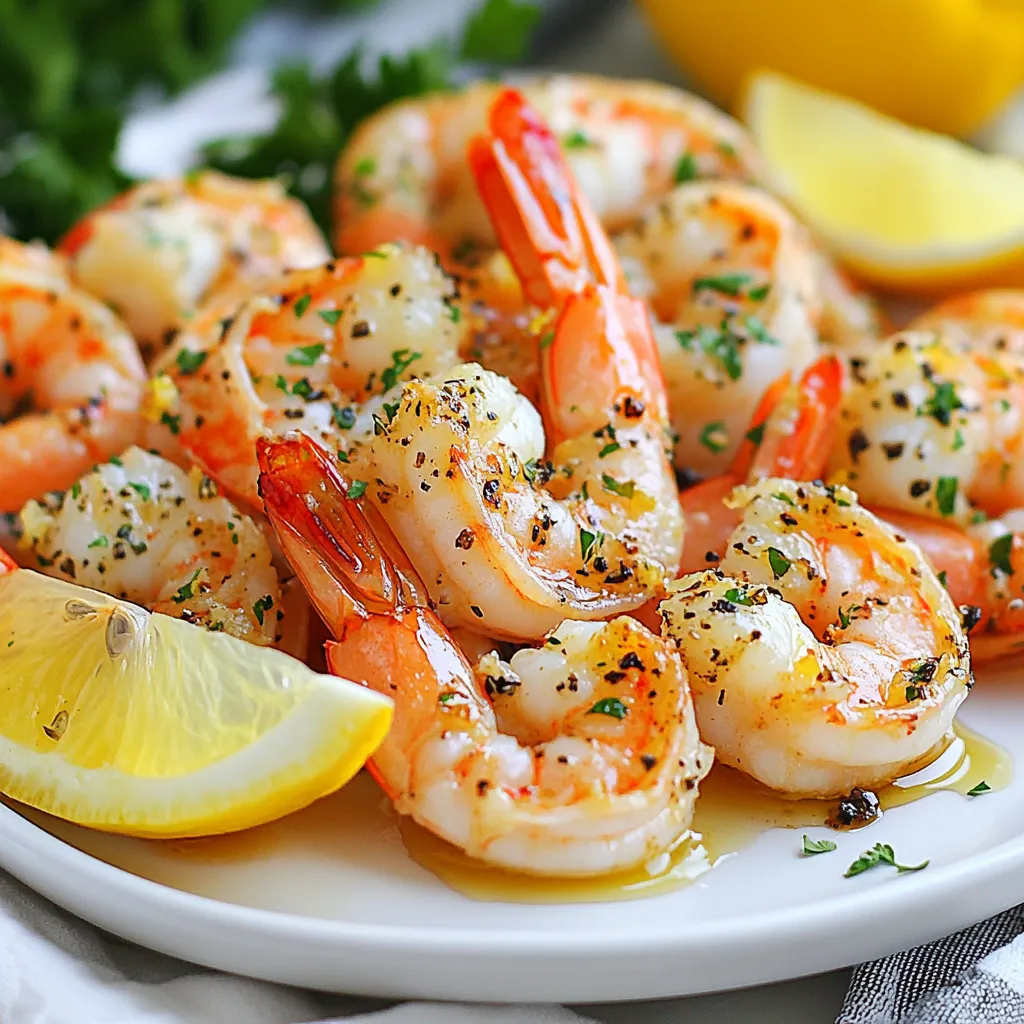 - 1 pound large shrimp, peeled and deveined - 4 cloves garlic, minced - 3 tablespoons olive oil - Zest of 1 lemon - Juice of 1 lemon - 1 teaspoon smoked paprika - 1/4 teaspoon red pepper flakes (optional) - Salt and freshly ground black pepper to taste The main ingredients for Lemon Garlic Roasted Shrimp make this dish pop with flavor. Large shrimp are the star. They are juicy and tender when cooked right. Minced garlic adds a strong and tasty kick. Olive oil helps the shrimp roast evenly. The zest and juice from the lemon give a fresh burst of flavor. Smoked paprika adds warmth, while red pepper flakes can spice things up if you like. - Fresh parsley, chopped for garnish - Additional lemon wedges For garnishing, fresh parsley adds color and a light taste. Plus, additional lemon wedges allow you to squeeze more juice on your shrimp. This extra touch makes each bite even better. You can be creative with your garnishes to make the dish look appealing and delicious. {{ingredient_image_1}} To start, gather your ingredients. You need olive oil, garlic, lemon zest, and spices. First, take a large bowl. Pour in 3 tablespoons of olive oil. Add 4 cloves of minced garlic. Then, zest one lemon and add it to the bowl. Squeeze in the juice of that lemon. Now, sprinkle in 1 teaspoon of smoked paprika and 1/4 teaspoon of red pepper flakes if you want some heat. Add salt and black pepper to taste. Mix everything well to ensure even distribution of flavors. Now, it's time to add shrimp to the marinade. Use 1 pound of large, peeled, and deveined shrimp. Toss the shrimp in the bowl. Make sure each piece is coated with the marinade. Let the shrimp marinate for about 15 minutes. This step helps the shrimp absorb all the zesty flavors. Preheat your oven to 400°F (200°C). While it heats up, prepare a baking sheet. Line it with parchment paper for easy cleanup. After marinating, spread the shrimp in a single layer on the baking sheet. Avoid crowding them; this helps them cook evenly. Roast the shrimp in the oven for 8 to 10 minutes. They are done when they turn pink and opaque. Be careful not to overcook them, as they can become rubbery. Once out of the oven, garnish the shrimp with fresh parsley for a bright finish. You can change the heat by adding red pepper flakes. Start with a little, then taste. If you like spice, add more. You can also switch herbs. Try fresh dill or oregano for a new twist. Set your oven to 400°F (200°C) for perfect roasting. This temp cooks shrimp fast and keeps them juicy. Watch closely as they roast. Shrimp cook quickly, so check at 8 minutes. They are done when pink and opaque. Overcooked shrimp become rubbery, so take them out on time. Serve the shrimp on lemon-infused rice or with garlic bread. This adds a nice touch. For color, use fresh parsley on top. You can also add lemon wedges on the side. It makes the dish look fresh and bright. Pro Tips Marinate for Maximum Flavor: Allowing the shrimp to marinate for at least 15 minutes helps to infuse them with the zesty lemon and garlic flavors for a more delicious result. Perfect Roasting Time: Keep a close eye on the shrimp while roasting; they should turn pink and opaque in 8-10 minutes. Overcooking can lead to a rubbery texture. Customize the Heat: Adjust the amount of red pepper flakes according to your heat preference. You can also add a pinch of cayenne for an extra kick. Fresh Herbs Matter: Always use fresh parsley for garnishing. It not only adds vibrant color but also enhances the overall freshness of the dish. {{image_2}} You can add fresh herbs to your shrimp for more taste. Try thyme or rosemary. They give a nice earthy flavor. You can also mix in other citrus fruits. Orange or lime juice can brighten the dish. This change makes the shrimp taste new and exciting. If you need gluten-free options, this recipe is great. All the ingredients are naturally gluten-free. Just make sure your spices are as well. For those on a low-carb diet, this dish fits perfectly. Shrimp are low in carbs but high in protein. Enjoy them without worry. You don’t have to roast shrimp in the oven. You can sauté them on the stovetop too. Heat some olive oil in a pan and cook the shrimp for a few minutes. This gives a quick and tasty meal. Another option is grilling. Grilling adds a nice smoky flavor. Just toss the shrimp on the grill for a few minutes. They’ll be full of flavor! To store leftover shrimp, place them in an airtight container. This keeps them fresh. Make sure they cool down first. You can refrigerate the shrimp for up to two days. When reheating, avoid the microwave if possible. Instead, warm them in a skillet on low heat. This helps keep them juicy. You can also add a splash of lemon juice for flavor. If you want to save shrimp for later, freezing works well. First, let the cooked shrimp cool completely. Then, place them in a freezer-safe bag. Remove as much air as you can to prevent freezer burn. You can freeze shrimp for up to three months. To thaw, move the bag to the fridge the night before. For a quick method, you can also run the bag under cold water. Avoid thawing shrimp in the microwave, as it can cook them unevenly. To keep shrimp juicy and tender, marinate them well. Use the marinade made of olive oil, garlic, lemon zest, and lemon juice. Let the shrimp sit in the marinade for about 15 minutes. This time lets the shrimp soak up all the tasty flavors. When cooking, avoid high heat and long cooking times. Roast the shrimp at 400°F for just 8 to 10 minutes. Watch them closely. They are done when they turn pink and opaque. Overcooking will make them tough. Yes, you can use frozen shrimp for this recipe. First, thaw the shrimp properly. The best way is to put them in the fridge overnight. If you need them fast, place them in a bowl of cold water for about 15-20 minutes. Change the water every few minutes. After thawing, remove the shells and devein them if needed. Then, you can follow the same steps in the recipe. Just rem