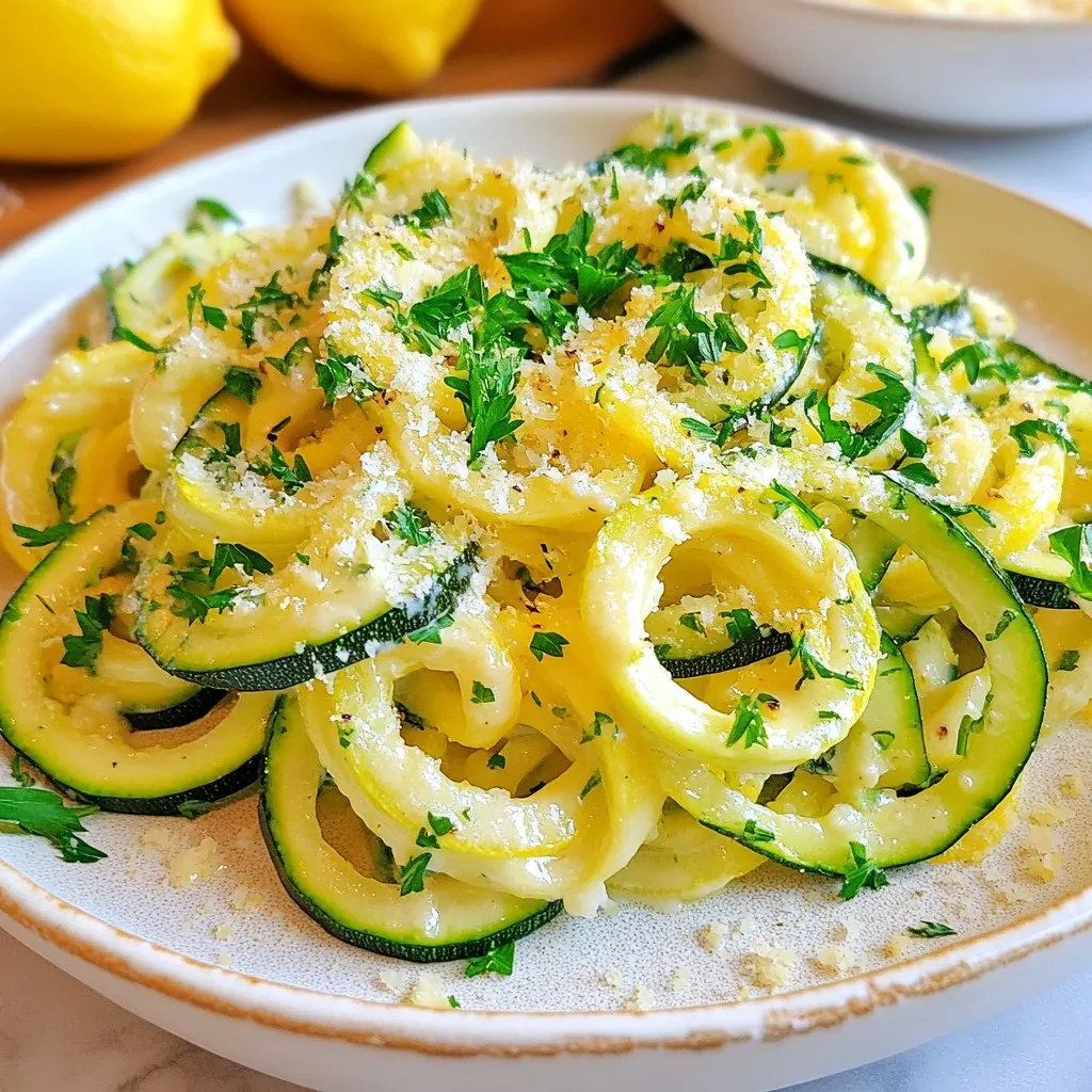A creamy and healthy pasta alternative made with zucchini noodles and a flavorful lemon garlic sauce.
