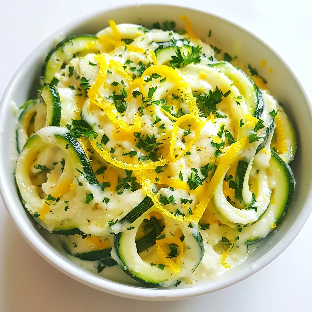 - 4 medium zucchini (zoodles) - 1 tablespoon olive oil - 3 cloves garlic, minced - 1 cup cauliflower florets (steamed) - 1 cup vegetable broth - 1/4 cup nutritional yeast - 1 tablespoon lemon juice - Zest of 1 lemon - Salt and pepper to taste - Fresh parsley, chopped (for garnish) These ingredients create a fresh and tasty dish. Zoodles are the star here, giving a light base. The garlic adds depth and flavor. Cauliflower makes the sauce creamy without dairy. Nutritional yeast brings a cheesy taste, while lemon brightens everything. - Red pepper flakes (for heat) - Grated Parmesan cheese (if not dairy-free) - Sun-dried tomatoes (for sweetness) - Spinach or kale (for greens) Adding these optional ingredients can enhance your dish. Red pepper flakes give a nice kick. Cheese adds richness, while sun-dried tomatoes add a sweet touch. Greens can boost the nutrition and color. - Zucchini: Try yellow squash or carrots for different flavors. - Cauliflower: Use steamed broccoli for a bolder taste. - Vegetable broth: Chicken broth works if you’re not vegetarian. - Nutritional yeast: You can omit it but lose some cheesy flavor. Substitutions make the recipe flexible. Feel free to use what you have. Each change can offer a new twist to the dish. {{ingredient_image_1}} To make zoodles, you need fresh zucchini. You can spiralize them easily. Use a spiralizer or a vegetable peeler. Cut the zucchini into thin strips. Aim for noodle-like shapes. This gives you a fun, healthy base. After spiralizing, set your zoodles aside. They will cook quickly later. Start by heating olive oil in a large skillet. Use medium heat for best results. Add in the minced garlic. SautΓ© for 1-2 minutes until it smells great. Don’t let it brown. Next, add steamed cauliflower florets. Pour in vegetable broth and bring to a gentle simmer. Cook this for about 5 minutes. After simmering, take the skillet off the heat. Use an immersion blender to mix it until smooth. If you don’t have one, a regular blender works too. Once smooth, stir in the nutritional yeast, lemon juice, and lemon zest. This adds a bright flavor. Season with salt and pepper to taste. Now, return to your skillet from the garlic. Add the zoodles and sautΓ© them for about 2-3 minutes. You want them just tender, not mushy. Once done, pour the lemon garlic Alfredo sauce over the zoodles. Toss everything gently to coat. Make sure the zoodles are heated through. Serve your dish right away. Top it with fresh chopped parsley for a pop of color. Enjoy the simple, tasty flavors of this meal! To get the best texture for your zoodles, start with firm zucchini. Use a spiralizer for even shapes. If you don't have one, a vegetable peeler works too. Make sure to cut zoodles thin. This helps them cook faster and stay tender. SautΓ© them quickly in the skillet. Cook for only 2-3 minutes to avoid mushiness. You want them to be soft but still have a bite. Adding flavor is key to making your dish shine. Use fresh garlic for a strong taste. SautΓ© it until it's fragrant but not browned. The lemon juice and zest bring brightness and freshness. Nutritional yeast adds a cheesy flavor without dairy. Don’t forget to season with salt and pepper. Taste your sauce before serving. Adjust the seasoning to make it perfect. If you have leftover sauce, store it in an airtight container. It stays good in the fridge for about three days. You can reheat it on low heat. Add a splash of broth or water to thin it out. Use it with other veggies or pasta. This sauce also works great with chicken or fish. Get creative and enjoy your tasty leftovers! Pro Tips Choosing Zucchini: Select firm, bright green zucchini for the best flavor and texture. Avoid any that have soft spots or blemishes. Blending Tips: For an ultra-smooth sauce, ensure your cauliflower is fully cooked and steaming hot before blending. This helps achieve a creamy consistency. Adding Protein: If you'd like to make this dish heartier, consider adding grilled chicken or sautΓ©ed shrimp for extra protein. Storage Advice: Store any leftovers in an airtight container in the fridge for up to 3 days. Reheat gently on the stovetop to avoid overcooking the zoodles. {{image_2}} This Lemon Garlic Zoodle Alfredo is naturally gluten-free. Zoodles made from zucchini are a great alternative to pasta. You can enjoy this dish without any worries about gluten. Just make sure all your ingredients, like vegetable broth and nutritional yeast, are labeled gluten-free. Feel free to get creative! You can add protein or extra veggies to make this dish more filling. Here are some tasty options: - Grilled chicken - Shrimp - Tofu - Spinach - Bell peppers - Broccoli Just sautΓ© these add-ins with the garlic. This way, they soak up the great flavors. If you want to keep this dish dairy-free, you’re in luck! The recipe already uses nutritional yeast instead of cheese. This gives a nice cheesy flavor without dairy. You can also use coconut milk instead of vegetable broth for a creamier sauce. To keep your Lemon Garlic Zoodle Alfredo fresh, store it in an airtight container. Make sure to let it cool before sealing. This helps prevent sogginess and keeps the flavors intact. You can keep it in the fridge for up to three days. If you have leftovers, it’s best to store the sauce and zoodles separately. This way, the zoodles won’t get too soft. When you're ready to enjoy your leftovers, heat them gently. You can use a skillet over low heat. Add a splash of vegetable broth or water to keep it moist. Stir often to help heat evenly. Avoid using a microwave, as it can make the zoodles watery. Reheating slowly preserves the taste and texture better. If you want to freeze your Lemon Garlic Zoodle Alfredo, it’s best to freeze just the sauce. The zoodles do not freeze well and can become mushy. Allow the sauce to cool completely before transferring it to a freezer-safe container. It can last in the freezer for about a month. When ready to use, thaw it in the fr