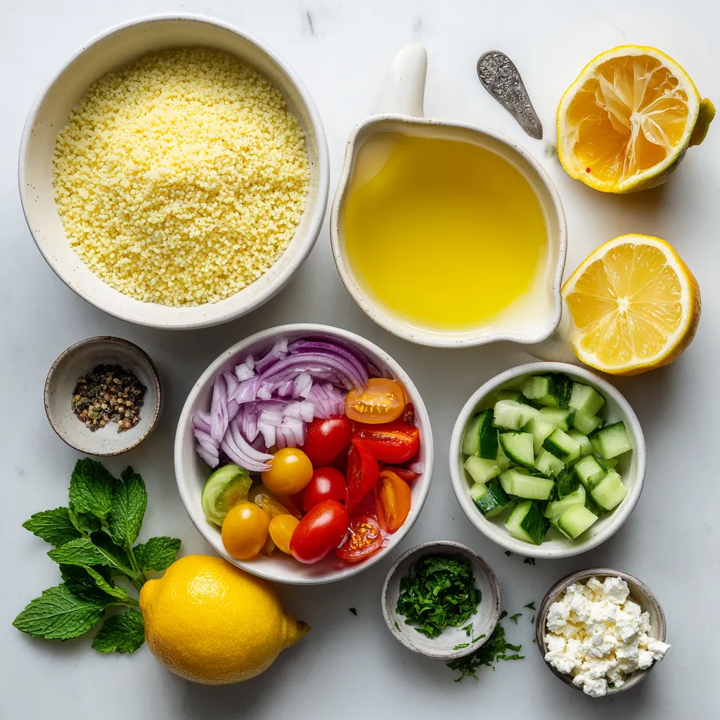 2. Combining vegetables and herbs: In a large mixing bowl, combine the cooled couscous with 1/2 cup cherry tomatoes (halved), 1/2 cucumber (diced), and 1/4 red onion (finely chopped). Then, add 1/2 cup parsley and 1/4 cup fresh mint, both finely chopped. Toss all the ingredients together gently. This ensures that every bite is packed with flavor.