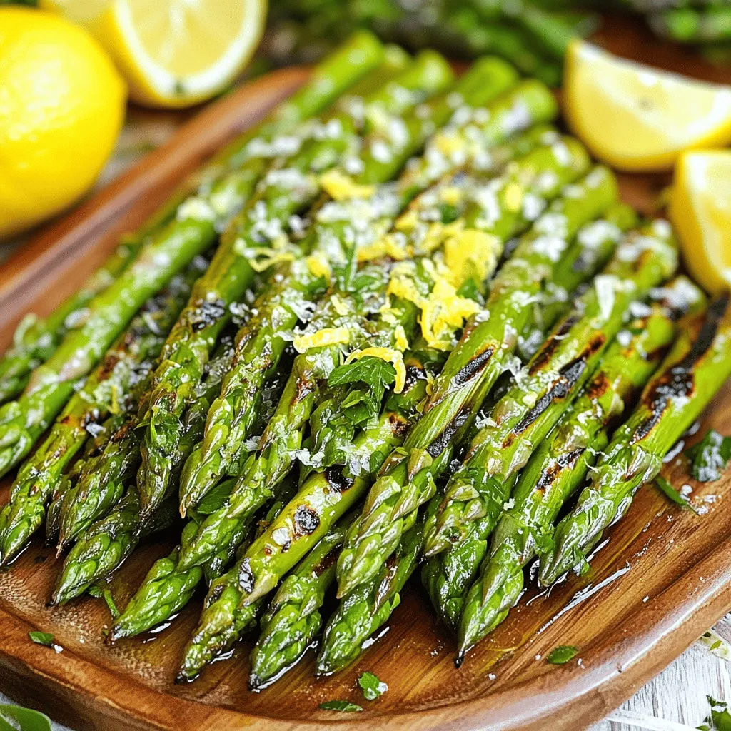 After grilling, remove the asparagus and let it rest for a couple of minutes. If you want to add more flavor, sprinkle grated Parmesan cheese on top. This gives a rich taste that pairs well with the lemon and herbs.