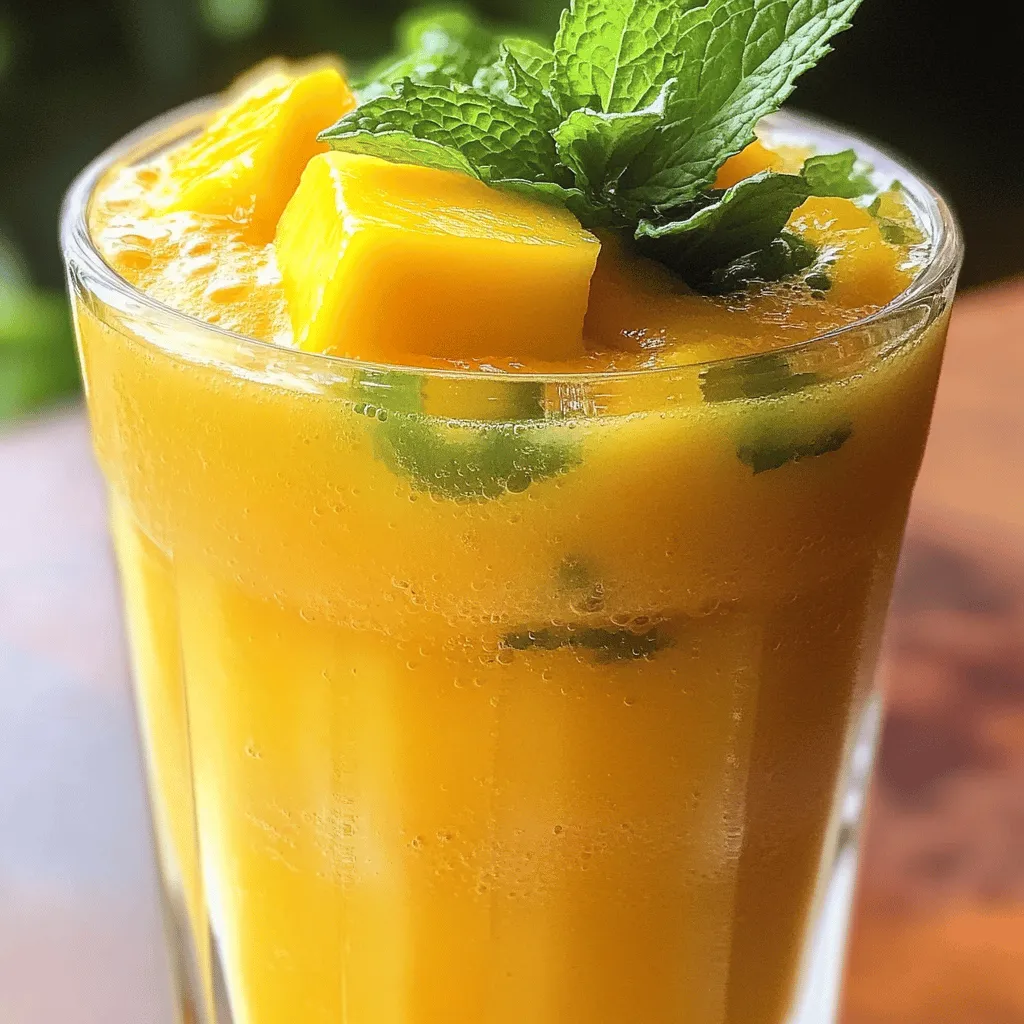 To make a delicious Mango Pineapple Smoothie, you will need the following ingredients: - 1 ripe mango, peeled and diced - 1 cup fresh pineapple chunks - 1 banana, sliced - 1 cup coconut milk (or almond milk for a nut-free version) - 1 tablespoon honey or agave syrup (optional) - 1 tablespoon lime juice - A handful of ice cubes - Fresh mint leaves for garnish These ingredients bring bright flavors together. The ripe mango adds sweetness, while pineapple gives a tangy twist. The banana makes the smoothie creamy and smooth. Coconut milk adds a rich texture, and lime juice brightens everything up. You can add honey or agave for extra sweetness, but it’s not a must. The ice cubes chill the drink, making it refreshing. Lastly, fresh mint leaves add a lovely touch on top. Using fresh ingredients makes a big difference in taste. This recipe is easy and quick, taking just five minutes to prepare. Go ahead and gather these ingredients for a tropical treat! If you want the full recipe, check out the Tropical Bliss Mango Pineapple Smoothie. To make your Mango Pineapple Smoothie, let’s dive into the details of each step. - Combining ingredients in the blender: Start by placing the diced mango, fresh pineapple chunks, and sliced banana into your blender. These fruits blend together to create a bright and tasty base. - Adjusting sweetness and lime juice: Pour in the coconut milk and the lime juice next. If you like it sweet, add honey or agave syrup. Blend until everything is smooth. You might want to taste it. If it needs more sweetness, add a bit more honey. If it needs a tangy kick, squeeze in more lime juice. - Pouring and garnishing the smoothie: Once your smoothie is creamy, pour it into chilled glasses. For a pop of color, add fresh mint leaves on top. This not only looks nice but adds a fresh flavor too. Now you’re ready to enjoy your fresh and flavorful bliss! Remember, for the full recipe, check the details above! To get a smooth mango pineapple smoothie, use a strong blender. Start by adding your fruits first. This helps them blend easily. Next, pour in your coconut milk and lime juice. The liquid helps move the fruit around. Blend on high speed until smooth. If you notice chunks, stop and scrape down the sides of the blender. This ensures everything gets mixed well. Blend again until you reach your desired creaminess. If you don’t have coconut milk, almond milk works great too. It gives a nice nutty flavor. You can also use oat milk if you prefer. For sweeteners, honey or agave syrup adds great taste. If you want to skip the sugar, try ripe bananas. They add natural sweetness without extra calories. Serving your smoothie can be fun! Use clear glasses to show off those vibrant colors. You can layer the smoothie with yogurt or granola for a beautiful look. For garnishes, fresh mint leaves add a pop of green and freshness. You can also add a slice of lime on the rim for a zesty touch. This makes your drink look special and inviting. For more ideas, check out the Full Recipe. {{image_2}} You can change the taste of your Mango Pineapple Smoothie by adding more fruits. Try using ripe papaya or juicy kiwi for that tropical feel. These fruits add sweetness and a new texture. You can also mix in berries. Strawberries or blueberries bring a nice tartness that balances the sweet mango and pineapple. This adds a fun twist and gives you more color. To make your smoothie even healthier, consider adding protein powder or Greek yogurt. These ingredients make it creamier and add protein, which helps keep you full longer. You can also try superfoods like chia seeds or flaxseeds. These tiny seeds pack a big punch of nutrients and fiber. Just a spoonful can boost the health benefits of your smoothie. If you need a meal replacement, you can turn your smoothie into a filling option. Add some oats or nut butter to give it more substance. This will keep you satisfied through busy mornings. Another fun idea is to create smoothie bowls. Pour your smoothie into a bowl and top it with granola, sliced fruits, and nuts. This makes your drink more of a meal and adds texture and crunch. For the full recipe, check out the Tropical Bliss Mango Pineapple Smoothie section above! To store any leftover smoothie, pour it into a clean jar. Make sure to leave some space at the top. It helps the smoothie stay fresh longer. Seal the jar tightly. Place it in the fridge. This keeps the smoothie good for up to 24 hours. To maintain freshness, give the smoothie a gentle shake before drinking. I often find that smoothies separate after sitting. This small step helps mix everything back together. If it looks thick, add a splash of coconut milk or water. Blend it again for a smooth drink. Freezing smoothie packs is a great idea for busy days. Simply portion the smoothie into freezer-safe bags. Use a straw to suck out the air before sealing. This helps prevent freezer burn. Label each bag with the date and ingredients. You can enjoy your smoothie for up to three months. When you want to enjoy a frozen smoothie, remove a bag from the freezer. Let it sit at room temperature for about 10 to 15 minutes. If you're in a hurry, place it in a bowl of warm water for a quick thaw. Once thawed, blend again to revive the texture. Now you’re ready to sip on that tropical bliss! Yes, you can make this smoothie vegan! Here are some easy swaps: - Use coconut milk or almond milk for a nut-free version. - Replace honey with agave syrup or maple syrup for sweetness. - Ensure that any additional ingredients, like protein powders, are also vegan-friendly. These changes will keep your smoothie plant-based and delicious! To make your smoothie thicker, try these tips: - Add more banana or mango. These fruits naturally thicken smoothies. - Use less liquid, like coconut milk or almond milk. Start with half a cup and add more if needed. - Include frozen fruits instead of fresh ones. Frozen fruits add creaminess and thickness. Play around with these methods 