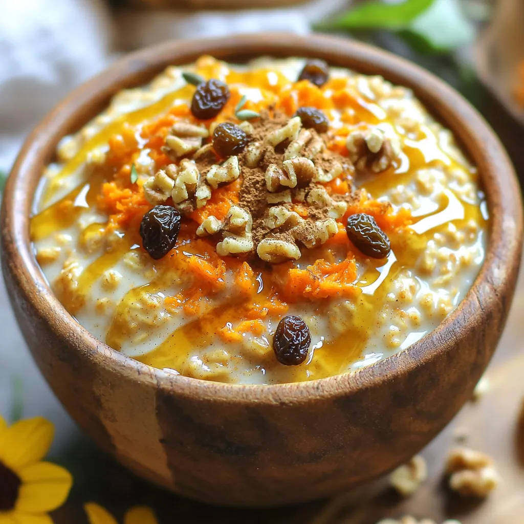 To make the Maple Glazed Carrot Cake Oatmeal, we need some simple ingredients. First, the main ingredients are rolled oats, almond milk, grated carrots, raisins, and walnuts. You can use any milk you like. The oats give it a hearty base. Grated carrots add sweetness and color. Raisins bring a chewy texture. If you want, add walnuts for a nice crunch.