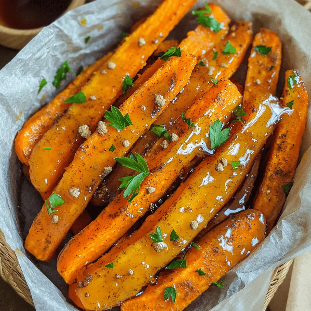 The maple glaze makes these fries special. You’ll need two tablespoons of olive oil and three tablespoons of pure maple syrup. The olive oil helps the glaze stick. The maple syrup adds sweetness and a nice shine. This balance creates a tasty flavor that pairs well with the carrots.