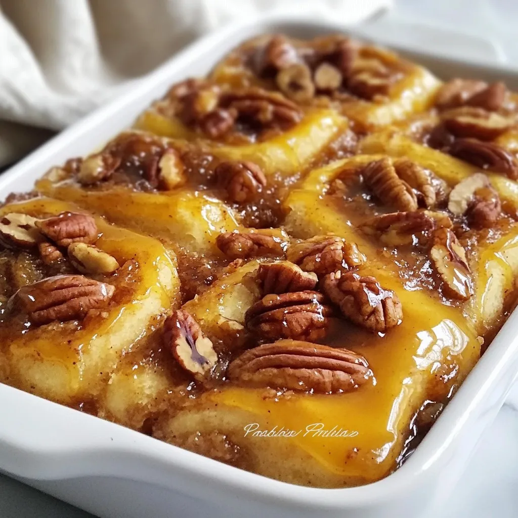 - 4 cups all-purpose flour - 1/4 cup granulated sugar - 2 1/4 teaspoons instant yeast - 1 teaspoon salt - 1/2 cup whole milk - 1/2 cup unsalted butter - 2 large eggs - 1 teaspoon vanilla extract - 1 cup pecans, chopped - 1/2 cup brown sugar - 1/2 cup maple syrup - 1 tablespoon ground cinnamon - 1/4 cup unsalted butter for filling To make Maple Pecan Sticky Buns, you need simple ingredients. The base is all-purpose flour, which gives the buns their structure. Granulated sugar adds sweetness, while instant yeast helps the dough rise. Salt enhances flavors, and whole milk makes the dough rich. Unsalted butter adds moisture and flavor. The eggs bind the dough and add richness. Pecans bring a delightful crunch. Brown sugar and maple syrup form the sticky topping, giving these buns their signature flavor. Ground cinnamon adds warmth and spice. You’ll also need some softened butter for the filling, making the buns extra delicious. - Variations for nut use (e.g., walnuts, almonds) - Flavor substitutions (e.g., almond extract instead of vanilla) If you want to change things up, you can swap nuts. Walnuts or almonds work great instead of pecans. You can also use almond extract in place of vanilla for a different flavor. These swaps can create a new twist on this classic treat. {{ingredient_image_1}} To start, you need to mix the dry and wet ingredients. In a large bowl, combine 4 cups of all-purpose flour, 1/4 cup of granulated sugar, 2 1/4 teaspoons of instant yeast, and 1 teaspoon of salt. Whisk these together well. In another bowl, mix 1/2 cup of warmed whole milk, 1/2 cup of melted unsalted butter, 2 large eggs, and 1 teaspoon of vanilla extract. Pour the wet mix into the dry mix. Stir it until a dough forms. Next, knead the dough on a floured surface for about 5-7 minutes. You want the dough to become smooth and elastic. When you finish kneading, place the dough in a greased bowl. Cover it with a damp cloth and let it rise in a warm spot for about 1 hour. It should double in size. While the dough rises, prepare the sticky topping. In a medium saucepan, combine 1 cup of chopped pecans, 1/2 cup of brown sugar, 1/2 cup of maple syrup, and 1/4 cup of softened unsalted butter. Heat it over medium heat. Stir until everything melts and blends well. Once it's ready, remove it from heat and set it aside. After the dough has risen, punch it down gently to release air. Roll the dough out on a floured surface into a rectangle, about 16x12 inches. Spread the softened butter over the surface. Then, sprinkle a mix of 1 tablespoon of ground cinnamon and more brown sugar evenly on top. Next, start rolling the dough tightly from one long side. Once you have a log, cut it into 12 equal pieces. Place the cut rolls snugly in a greased 9x13-inch baking dish. Pour the sticky pecan mixture evenly over the rolls. Cover the dish with a cloth and let the buns rise for another 30 minutes until puffy. Preheat your oven to 350°F (175°C). Bake the buns for 25-30 minutes until they turn golden brown. After baking, let them cool for 5 minutes before flipping them onto a serving platter. Enjoy your warm Maple Pecan Sticky Buns! To know when the dough has risen enough, look for it to double in size. This process usually takes about one hour. If your dough is soft and puffy, it's ready. When kneading the dough, use a floured surface. Knead it for about 5 to 7 minutes. You want it smooth and elastic. If the dough sticks to your hands, sprinkle a bit more flour. When rolling out the dough, aim for a rectangle. Make it about 16 by 12 inches. This size helps in getting even rolls. Maple Pecan Sticky Buns taste best warm. Serve them fresh from the oven for a delightful treat. You can drizzle extra maple syrup over the top for added sweetness. For drinks, consider pairing these buns with coffee or hot chocolate. A side of whipped cream cheese spread adds a nice touch. One common mistake is over-kneading the dough. This can make the buns tough. If you feel the dough is too firm, stop kneading. Another mistake is not allowing enough time for rising. The dough needs time to puff up. Skipping this step can lead to dense buns. Always be patient for the best results. Pro Tips Use Fresh Yeast: Ensure your yeast is fresh for the best rise and fluffy buns. If unsure, proof it in warm water with sugar before adding to the dough. Room Temperature Ingredients: Using room temperature eggs and butter helps create a smoother dough and enhances the overall texture of the buns. Customize the Nuts: Feel free to substitute pecans with walnuts or almonds for a different flavor profile in your sticky buns. Extra Sticky Topping: For an even stickier finish, increase the amount of maple syrup in the topping mixture for a more decadent treat. {{image_2}} You can change the flavor of your sticky buns easily. Try adding spices like nutmeg or cardamom for warmth. These spices give a nice twist to the sweet taste. If you want a creamier topping, swap the maple glaze for a cream cheese glaze. This change adds a rich, tangy flavor that pairs well with the sweetness. For those with dietary needs, there are great options. You can use gluten-free flour instead of all-purpose flour. Many brands make good blends that work well in baking. If you want to make these buns vegan, try using plant-based milk and butter. Also, replace eggs with flaxseed meal or applesauce. These swaps keep the buns tasty and fluffy. You can serve sticky buns in different ways. Individual sticky buns are fun and easy to grab. Just cut them into smaller pieces before baking. This way, each person gets their own. Alternatively, you can make a larger pull-apart version. This style is perfect for sharing at brunch or a family gathering. Just bake all the rolls together, and everyone can enjoy pulling apart their treat! To keep your Maple Pecan Sticky Buns fresh, place them in an airtight container. You can store them in the fridge for up to five days. If you notice mold or an off smell, it's t