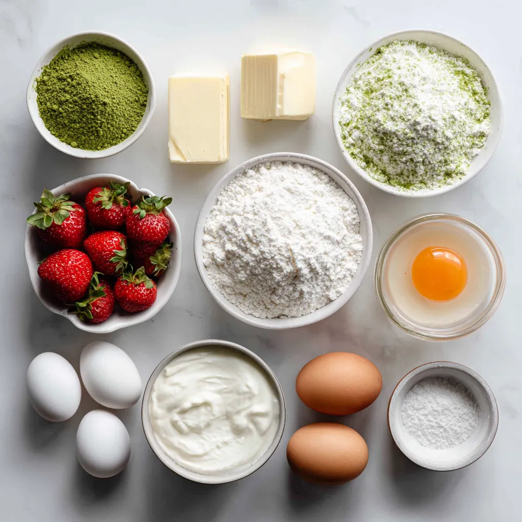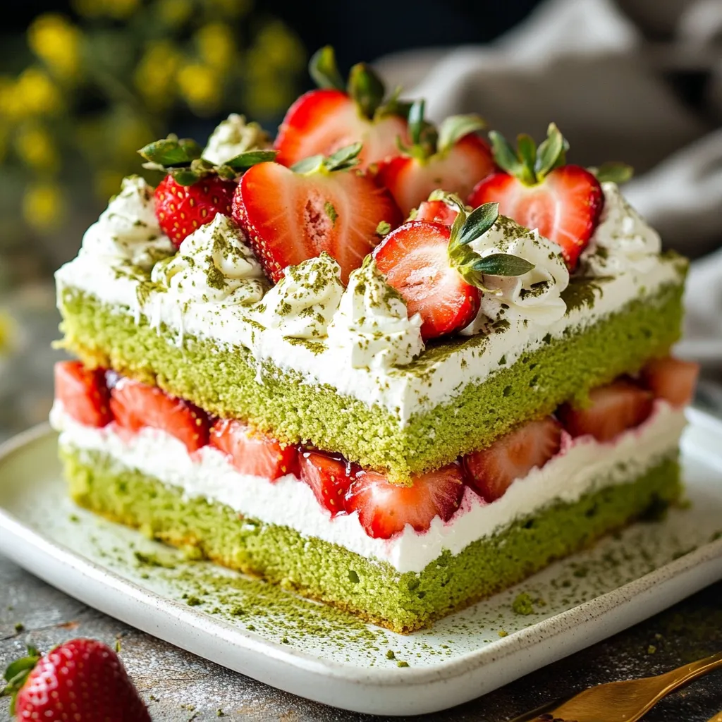 Matcha is packed with antioxidants. It boosts energy and helps focus. This bright green powder can even aid in weight loss. Strawberries are low in calories and high in vitamin C. They support heart health and improve skin. Together, they make a delicious and healthy treat. Enjoying this cake gives you a sweet way to boost your health!