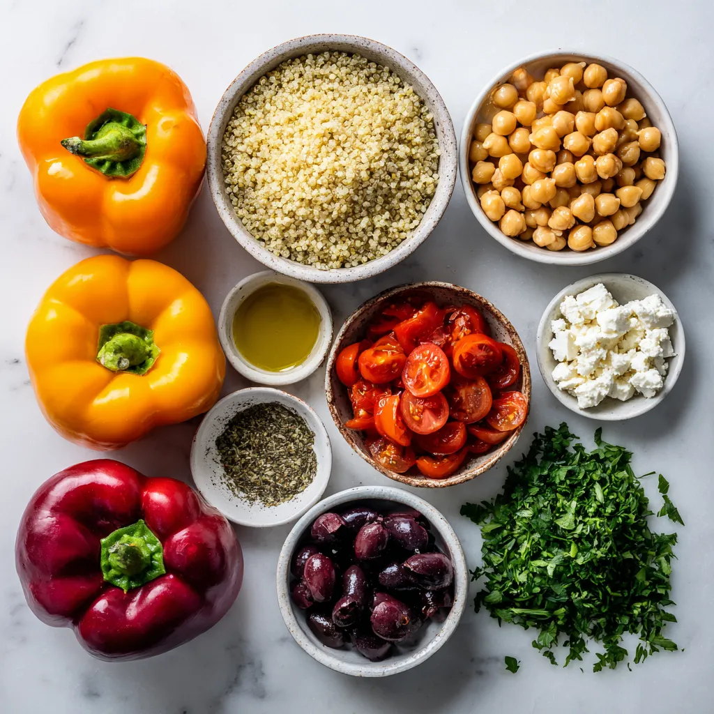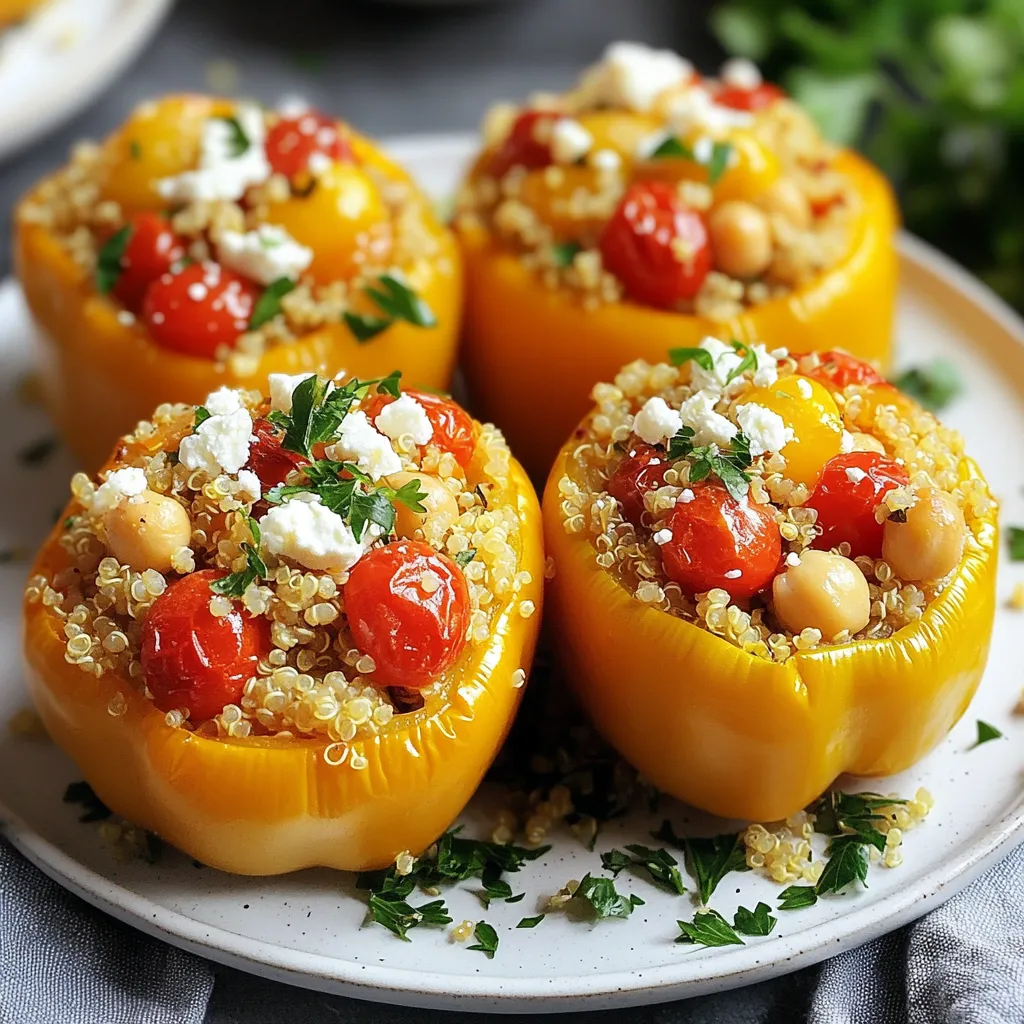 Delicious bell peppers stuffed with a savory quinoa mixture, perfect for a healthy meal.