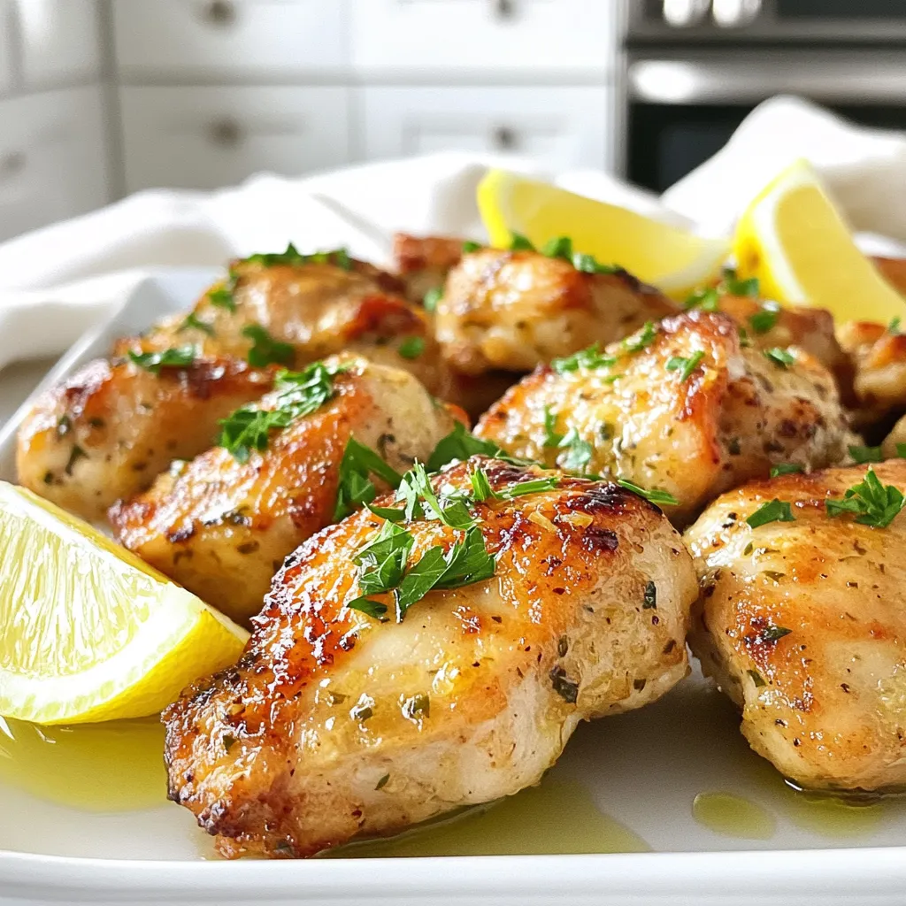 Garnishes make your dish look great. Use fresh parsley, chopped finely. This adds color and freshness. Also, include lemon wedges on the side. They are perfect for squeezing over the chicken bites. This adds more lemony goodness. You can serve these tasty bites with rice or a fresh salad for a full meal. Enjoy your cooking!
