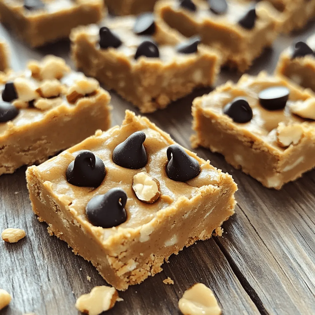- 1 cup creamy peanut butter - 1/2 cup honey or maple syrup - 2 cups rolled oats - 1/2 cup vanilla protein powder (optional) - 1/4 cup dark chocolate chips (dairy-free if preferred) - 1/4 cup chopped nuts (e.g., almonds or walnuts) - 1/2 teaspoon vanilla extract - Pinch of salt For my No-Bake Peanut Butter Bars, I use simple ingredients. Each one brings a unique flavor and texture. Each bar has about 150 calories. You get around 5 grams of protein, 8 grams of fat, and 15 grams of carbs. This makes them a nice snack or treat without too much guilt. You can switch the peanut butter for almond or cashew butter. If you want to change the sweetener, try agave or stevia for a different taste. These options let you customize your bars to fit your taste or diet needs. For the full recipe, feel free to refer to [Full Recipe]. First, you need to combine peanut butter and your sweetener. In a large bowl, mix 1 cup of creamy peanut butter with 1/2 cup of honey or maple syrup. Stir well until it’s smooth. This mixture is the base of your bars. Next, add some flavor. Stir in 1/2 teaspoon of vanilla extract and a pinch of salt. The salt really brings out the taste of the peanut butter. Now, it’s time to make the bars thicker. Gradually add 2 cups of rolled oats into your bowl. If you want a protein boost, include 1/2 cup of vanilla protein powder. Mix everything until it forms a thick dough. Then, fold in the fun stuff! Add 1/4 cup of dark chocolate chips and 1/4 cup of chopped nuts, like almonds or walnuts. Mix until these goodies are spread evenly throughout. You need a baking dish for the next step. Line an 8x8 inch baking dish with parchment paper. Make sure to leave some overhang. This helps when you remove the bars later. Transfer the mixture into the dish. Press it down firmly with your hands or a spatula. Make sure it’s even on top. Now, refrigerate the dish for 1 to 2 hours. This allows the bars to firm up nicely. Once they harden, lift them out using the parchment paper. Cut into squares or rectangles. You can find the full recipe [here]. To make the best no-bake peanut butter bars, the ratio of peanut butter to oats is key. You want a thick mixture that sticks together well. If you add too many oats, your bars may crumble. Aim for 1 cup of creamy peanut butter to 2 cups of rolled oats. Adjust the sweetness to fit your taste. Start with 1/2 cup of honey or maple syrup. If you like it sweeter, add a bit more. If you prefer less sweetness, you can use 1/3 cup. Store your homemade bars in an airtight container. This keeps them fresh and prevents them from drying out. You can also wrap individual bars in plastic wrap for easy snacking. To keep your bars fresh longer, place parchment paper between the layers. This prevents sticking and makes it easy to grab one when you need a treat. Pair your no-bake peanut butter bars with fruits like bananas or berries. A drizzle of melted dark chocolate adds a tasty touch, too. You can even dip the bars in chocolate for a fun twist. Try adding toppings like shredded coconut or chopped nuts before they harden. This adds flavor and texture. Enjoy these bars as a snack or a quick breakfast on the go! For the full recipe, check out [Full Recipe]. {{image_2}} You can easily change the taste of your no-bake peanut butter bars. Adding spices like cinnamon or nutmeg can give them a warm flavor. Sprinkle in a bit of cinnamon for a cozy touch. If you want a different taste, try using white or milk chocolate chips instead of dark chocolate. Each type of chocolate brings a unique sweetness and richness. If you want to make these bars vegan, swap honey for maple syrup. This keeps the bars sweet and delicious without using animal products. For gluten-free options, ensure you use certified gluten-free oats. This small change allows everyone to enjoy the bars, no matter their diet. Feel free to get creative with mix-ins! Try adding dried fruits like cranberries or raisins for a chewy texture. You can also add seeds like chia or flax for extra nutrition. Adjusting portion sizes can help meet your dietary needs. If you want a smaller snack, cut the bars into smaller squares. If you need more energy, make larger bars to fuel your day. Check out the Full Recipe for more details! Store your no-bake peanut butter bars in the refrigerator. Place the bars in an airtight container. This keeps them fresh and prevents them from drying out. You can use parchment paper to separate layers if needed. They stay best when chilled, so avoid leaving them out too long. For long-term storage, freeze your bars. Cut them into squares first, then wrap each piece in plastic wrap. Place the wrapped bars in a freezer-safe bag or container. This way, they stay fresh for up to three months. Just thaw them in the fridge before eating. In the fridge, your bars last about one week. If you freeze them, they can last for three months. Always check for signs of spoilage before eating. If they look or smell off, it’s best to toss them. Enjoy your treats at their freshest! To make No-Bake Peanut Butter Bars, follow these key steps: 1. Mix peanut butter and honey in a bowl until smooth. 2. Add vanilla extract and a pinch of salt. 3. Gradually stir in rolled oats and protein powder. 4. Fold in chocolate chips and nuts. 5. Line a baking dish with parchment paper. 6. Press the mixture into the dish evenly. 7. Chill in the fridge for 1–2 hours until firm. 8. Cut into squares and enjoy! These steps create a tasty treat without the need for baking. For the full recipe, check out the recipe section above. Yes, you can make these bars nut-free! Instead of peanut butter, use sun butter or soy nut butter. These options still give a creamy texture. You can also try seed butters like pumpkin seed butter. These alternatives work well and keep the bars delicious. If you want a vegan sweetener, consider these options: - Maple syrup - Agave nectar - Brown rice syrup - Coconut nectar These sweeteners can replace honey i