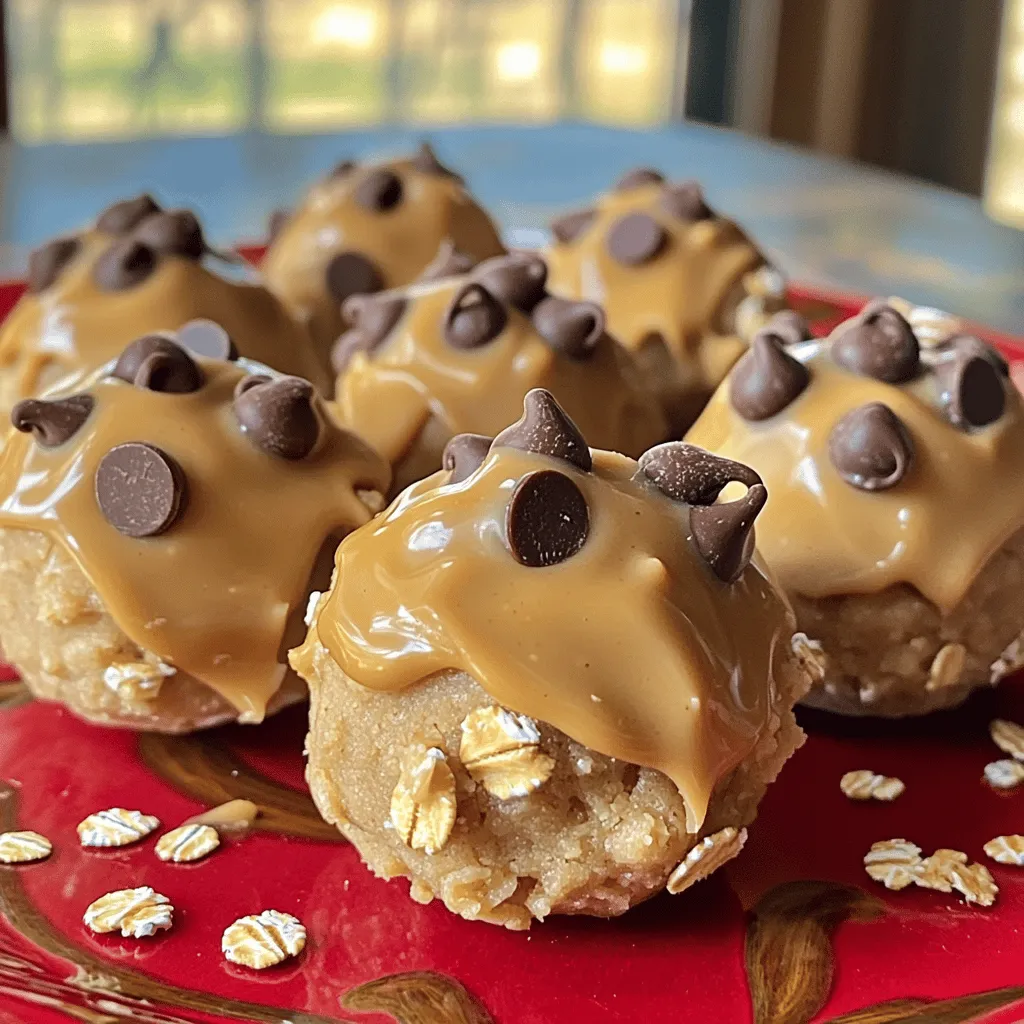 For a lovely display, arrange your cookie dough bites on a colorful plate. A bright or patterned plate adds fun and excitement. You can also sprinkle some whole oats and a few chocolate chips on top. This simple touch makes them look special and inviting.
