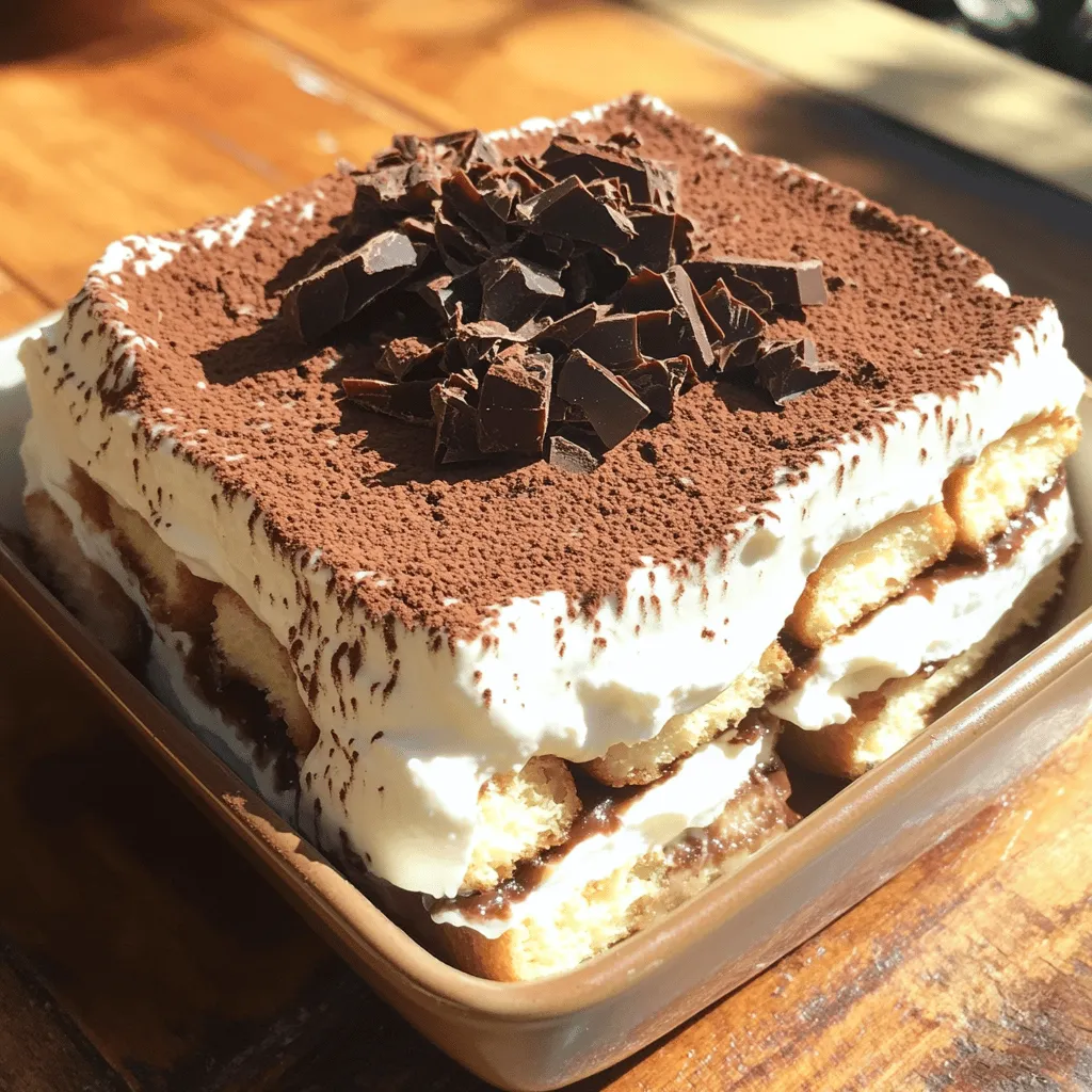 You can easily change up the flavor of your tiramisu. Adding a flavored liqueur, like Amaretto, gives it a nice twist. Just mix in a little of your chosen liqueur with the coffee for a new taste. You can also play with the type of chocolate you use. Dark chocolate adds richness, while milk chocolate offers a sweeter touch. Experimenting with flavors can make your dessert even more special.