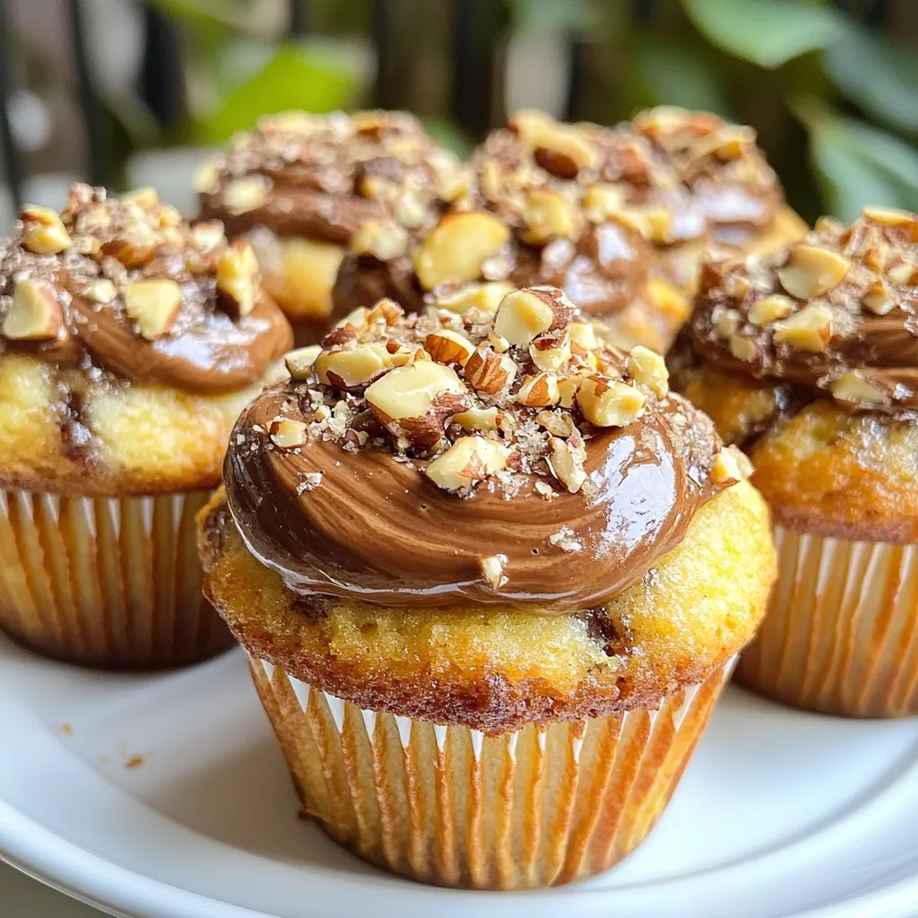 Deliciously moist banana muffins swirled with Nutella for a delightful treat.