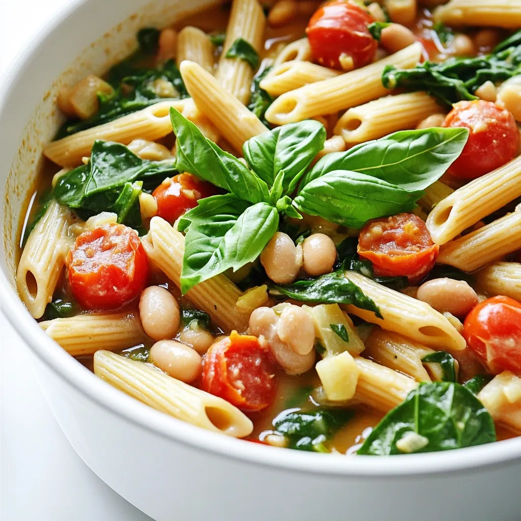 Using these ingredients makes the dish healthy and satisfying. Whole wheat pasta adds fiber. White beans pack protein and creaminess. Cherry tomatoes bring sweetness and color. Aromatic onion and garlic create a flavorful base. Dried herbs like oregano and basil add depth.