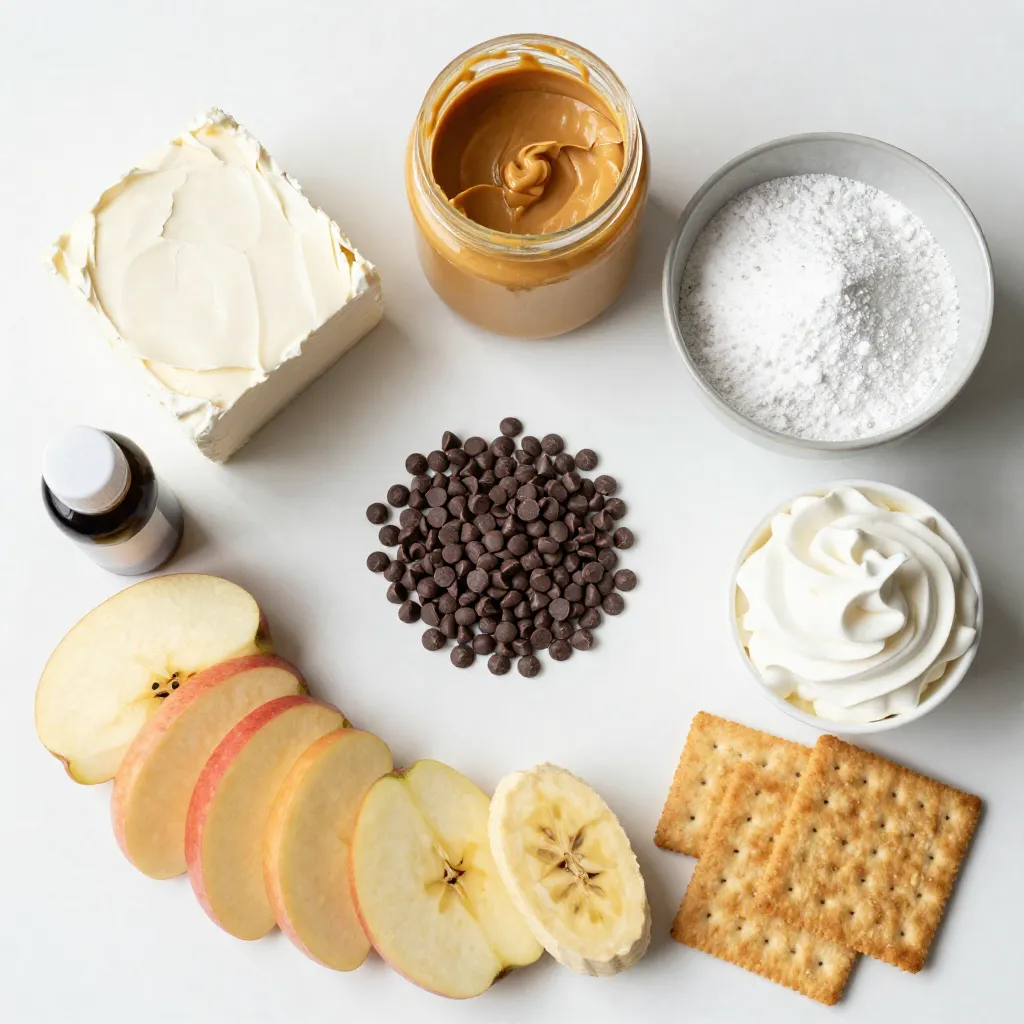 This recipe needs simple, tasty ingredients. First, cream cheese brings a smooth base. You want it softened for easy mixing. Next, creamy peanut butter adds rich flavor and creaminess. The powdered sugar gives sweetness. Vanilla extract adds warmth and depth to the taste. Mini chocolate chips bring bursts of chocolate goodness. Finally, whipped topping makes the dip fluffy and light. Fresh fruit and graham crackers serve as perfect dippers.