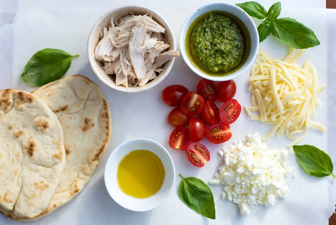 To make a delicious pesto chicken flatbread, you need these key ingredients: