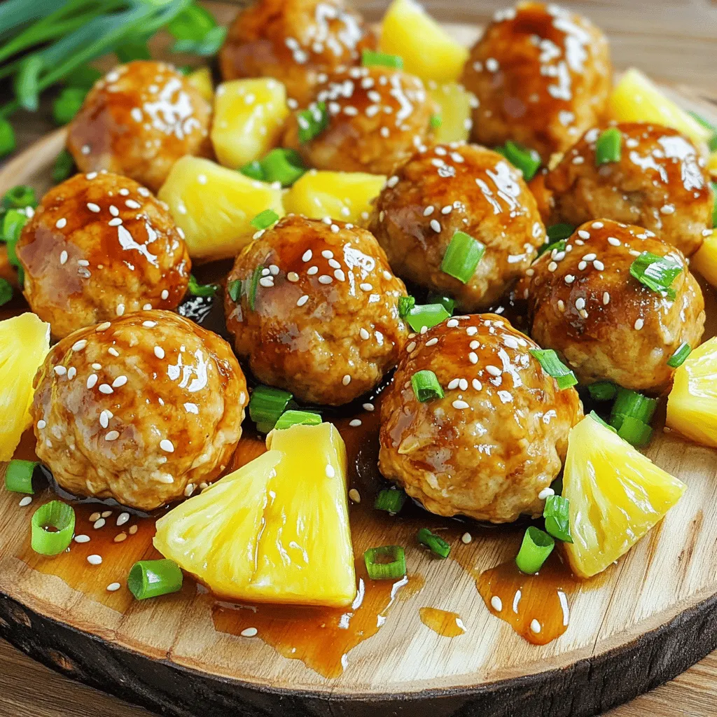 The main ingredients in this recipe create a balance of flavor and texture. Ground chicken forms the meatball base. I like to use breadcrumbs for lightness. Green onions add a nice crunch, and fresh pineapple brings sweetness. The egg helps bind the mixture. Soy sauce adds saltiness, while sesame oil gives a hint of nutty flavor. Garlic and ginger powders add depth.