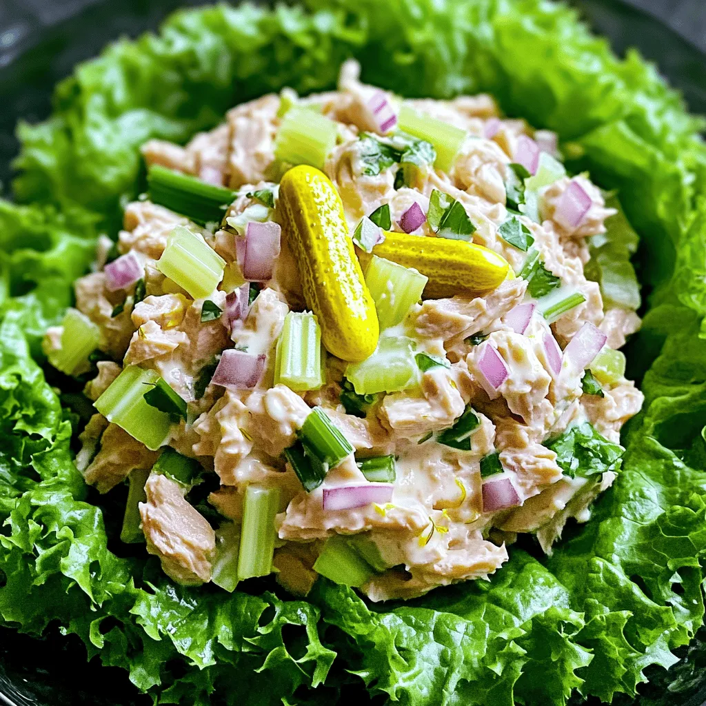 The main star of this dish is canned tuna. It’s quick, tasty, and full of protein. I like to use tuna packed in water for a lighter option. Mayonnaise adds creaminess, while Dijon mustard gives a nice tang. Fresh vegetables, like celery and red onion, add crunch and flavor. Dill pickles or relish bring a burst of sweetness that rounds out the taste. Don’t forget the lemon juice; it brightens the whole dish!