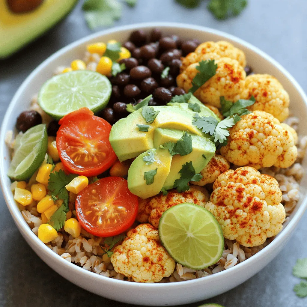 We eat with our eyes first. For a pretty bowl, layer your ingredients neatly. Start with a scoop of brown rice or quinoa. Then, add roasted cauliflower next. Sprinkle black beans and corn over the top. Place cherry tomatoes and avocado slices around the edges. Finish with a squeeze of lime and chopped cilantro. You can also add diced red onion or jalapeños for color and crunch.