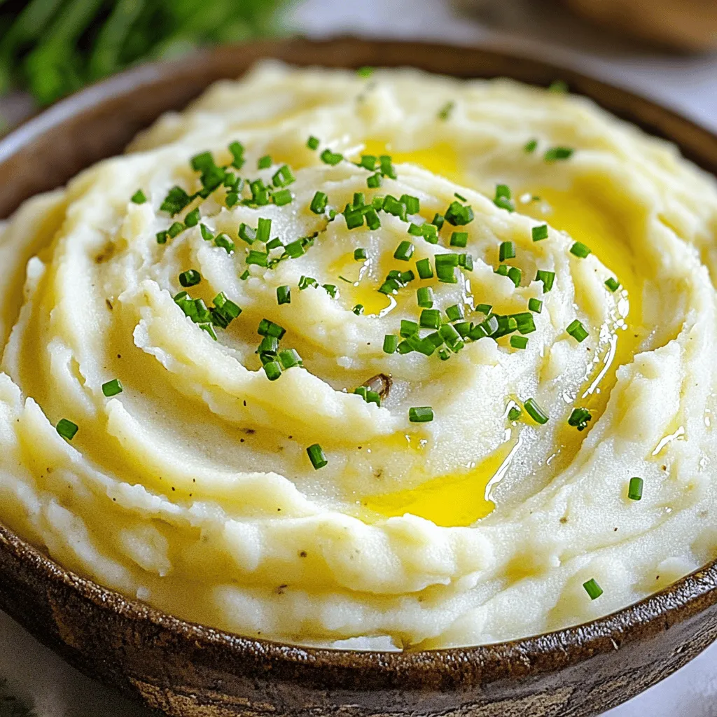 ![Here are the key ingredients for making roasted garlic mashed potatoes. Each one adds its own unique touch to this creamy comfort food. - 2 pounds Yukon Gold potatoes, peeled and quartered - 1 head of garlic - 4 tablespoons unsalted butter, softened - 1/2 cup whole milk or cream for richer taste - 1/4 cup sour cream - Salt and pepper to taste - Fresh chives or parsley for garnish These Yukon Gold potatoes are perfect because they are creamy and buttery. The roasted garlic adds a sweet and rich flavor. Butter and sour cream give it a nice, smooth texture. A splash of milk or cream makes it even creamier. You can adjust salt and pepper to your taste. Finally, fresh herbs like chives or parsley add color and freshness. For the full recipe, click [Full Recipe]. - Preheat the oven to 400°F (200°C). - Slice the top off the head of garlic. This helps the cloves roast evenly. - Wrap the garlic in aluminum foil and drizzle with olive oil. - Roast for 30-35 minutes until soft and golden. The smell will be amazing! - Place the quartered Yukon Gold potatoes in a large pot. - Cover the potatoes with cold water and add a good pinch of salt. - Bring the water to a boil and cook for 15-20 minutes until fork-tender. - Drain the potatoes and return them to the pot. Keep them warm. - Squeeze the roasted garlic cloves into the warm potatoes. - Add 4 tablespoons of softened butter, 1/2 cup of milk or cream, and 1/4 cup of sour cream. - Use a potato masher or electric mixer to mash until smooth and creamy. - Adjust the texture with more milk if needed. Season with salt and pepper to taste. Follow these steps, and you’ll create the most delightful roasted garlic mashed potatoes. For the complete recipe, check out the Full Recipe section. To make your roasted garlic mashed potatoes even better, use fresh herbs. Chives or parsley add a bright touch. Just chop them finely and sprinkle on top before serving. You can also add cheese for extra creaminess. Try cream cheese or cheddar. It brings a rich flavor that blends well with the garlic. You can choose how creamy or chunky you want your mashed potatoes. For a silky texture, mash the potatoes until smooth. If you like chunks, use a fork for a rustic feel. If you want them extra smooth, an electric mixer works wonders. Just be careful not to overmix, or they may become gluey. One key mistake is overcooking the potatoes. Boil them until fork-tender but not mushy. This keeps the potatoes firm and fluffy. Another issue is gluey mashed potatoes. This often happens if you mash them too much or use a food processor. Stick to a masher or a ricer for the best results. {{image_2}} You can boost your roasted garlic mashed potatoes with extra flavors. Try adding roasted vegetables like carrots or cauliflower. This gives your dish more color and taste. You can also spice it up! Fresh herbs like thyme or rosemary add a nice touch. Just chop them finely and mix them in for that fresh taste. If you're vegan, you can still enjoy this dish. Use plant-based butter and almond milk instead of cream and butter. This keeps the dish creamy without dairy. For those needing gluten-free options, you’re in luck! All the ingredients in this recipe are naturally gluten-free. Just check the labels on any substitutes to make sure. Different cultures have their own take on mashed potatoes. For example, loaded mashed potatoes are a hit in many places. They often include cheese, bacon, and green onions. Another fun version is garlic herb mashed potatoes. This variation uses fresh herbs to give a new twist. You can explore these ideas to make your dish even more exciting. Check out the Full Recipe for more inspiration! After you make roasted garlic mashed potatoes, let them cool. This helps keep moisture locked in. I suggest letting them cool for about 30 minutes. Once cooled, transfer them to a container. Use a glass or plastic container with a lid. This keeps them fresh longer. When you want to reheat your mashed potatoes, do it gently. You can use a microwave or stovetop. For the microwave, heat them in short bursts. Stir between each burst to keep them creamy. On the stovetop, add a splash of milk while warming. This helps refresh their texture. If you want to freeze your mashed potatoes, do so after they cool. Scoop them into freezer-safe bags or containers. Make sure to remove excess air. When you are ready to use them, thaw in the fridge overnight. For reheating, warm them on the stove, adding a bit of milk to bring back creaminess. Enjoy your creamy roasted garlic mashed potatoes! For the full recipe, check out the detailed steps above. You can make roasted garlic mashed potatoes without cream by using milk alternatives. Here are some great options: - Almond milk - Coconut milk - Soy milk - Oat milk These substitutes work well in the recipe. Each brings a unique flavor and creaminess. If you want a richer taste, try adding more butter or sour cream. Yes, you can use other types of potatoes. Each kind affects the taste and texture. Here are a few options: - Russet potatoes: These are starchy and make fluffy mashed potatoes. - Red potatoes: They are waxy and give a creamier texture. - Sweet potatoes: Use these for a sweeter and vibrant dish. Experiment with different types to find your favorite. Each variation can create a different taste experience. Roasted garlic mashed potatoes pair well with many dishes. Here are some ideas: - Grilled chicken or steak - Roasted vegetables - Meatloaf or pot roast - A fresh green salad You can also serve them with gravy or a rich sauce. These mashed potatoes can elevate any meal. Enjoy them as comfort food anytime! You can find the Full Recipe [here](#). In this blog post, we explored how to make roasted garlic mashed potatoes. We covered key ingredients, step-by-step instructions, and useful tips for the best taste and texture. You learned about fun variations and how to store leftovers properly. Mashed potatoes can be simple yet delicious. With thi