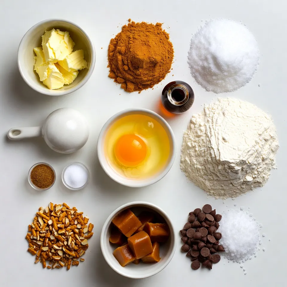 To make Salted Caramel Pretzel Cookies, gather these ingredients: