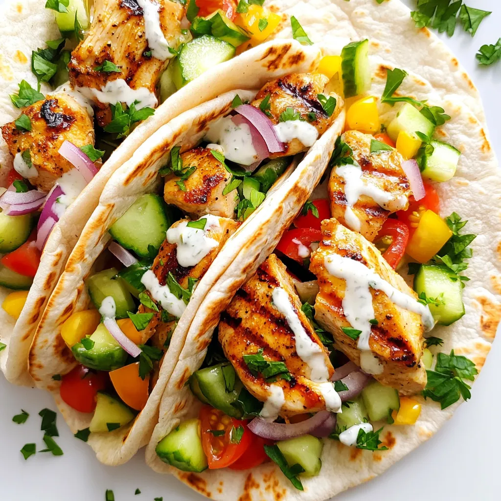 To know when your chicken is done, use a meat thermometer. The chicken should reach 165°F (75°C). This ensures it is safe to eat. Let the chicken rest for five minutes after grilling. This keeps it juicy. For perfectly warmed pita, grill them for about one minute on each side. This makes them soft and pliable.