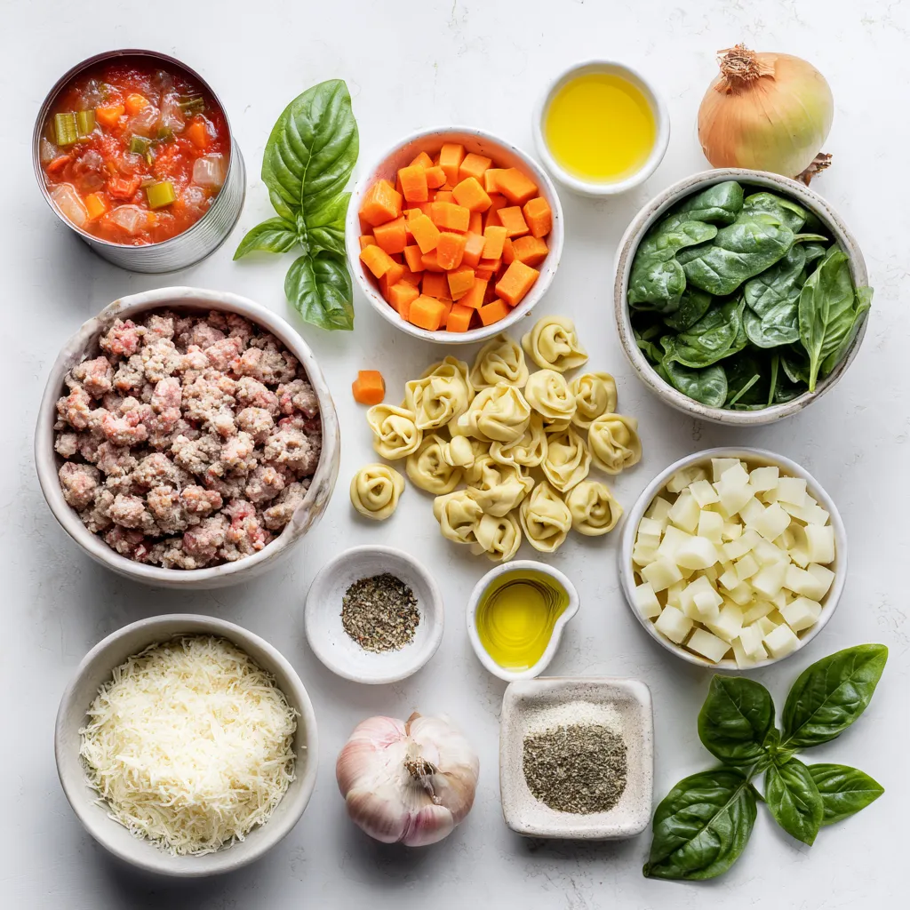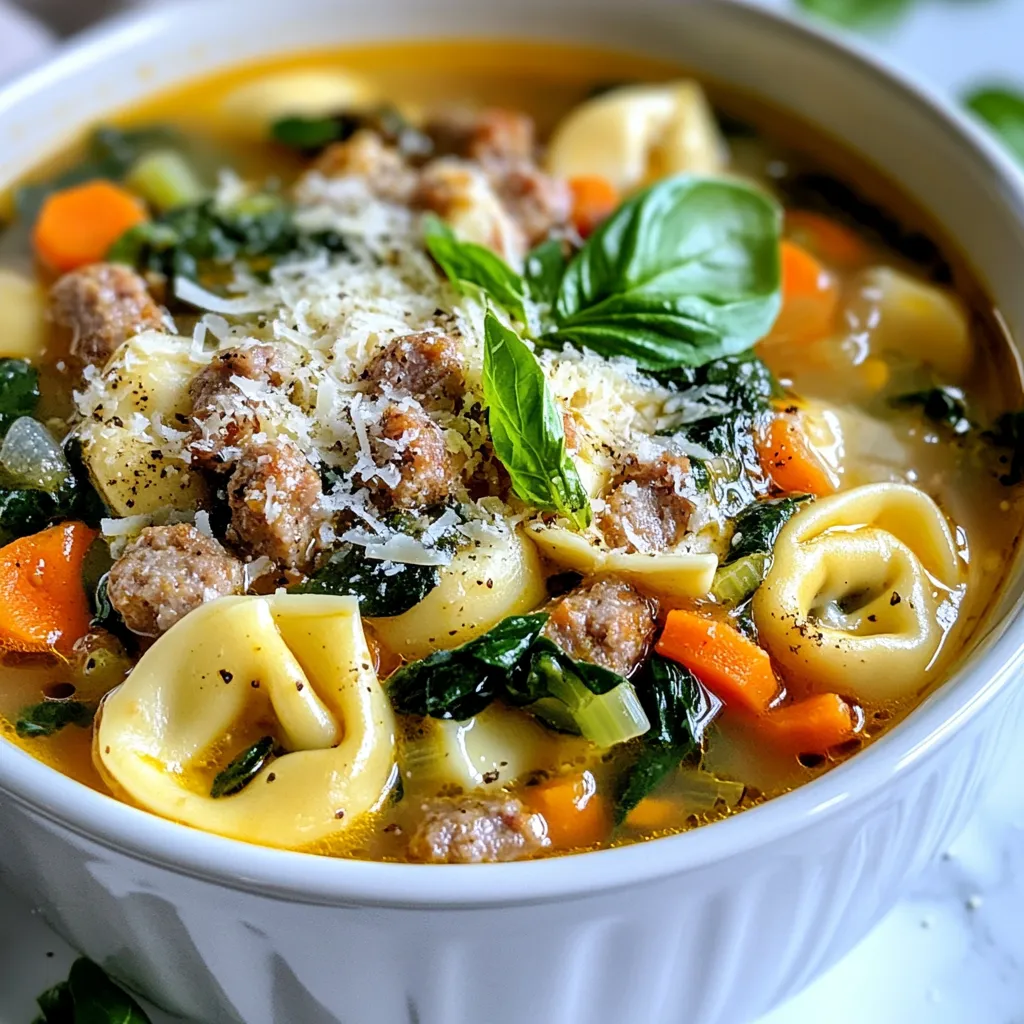 A hearty and flavorful soup featuring Italian sausage, cheese tortellini, and fresh vegetables.