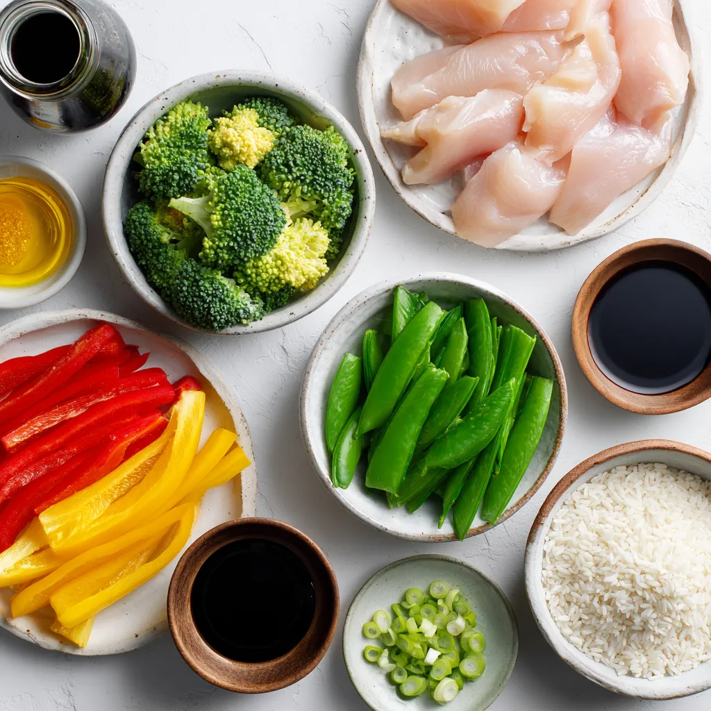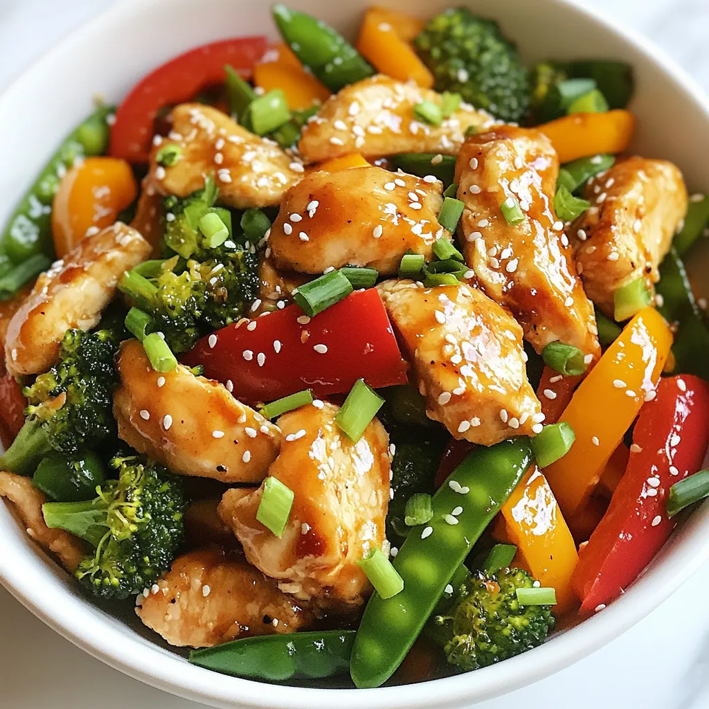 To make this dish, start with fresh chicken. I recommend boneless, skinless breasts for tender bites. Slice them thinly. This helps them cook fast. Next, choose colorful veggies. Bell peppers add sweetness and crunch. Broccoli brings a nice green touch, while snap peas offer a crisp bite. Fresh garlic and ginger boost flavor. They also make your kitchen smell amazing.
