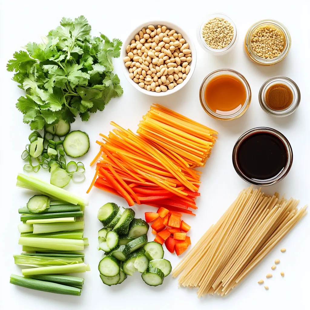 The ingredients for a Sesame Peanut Noodle Bowl are simple and fresh. You will need: