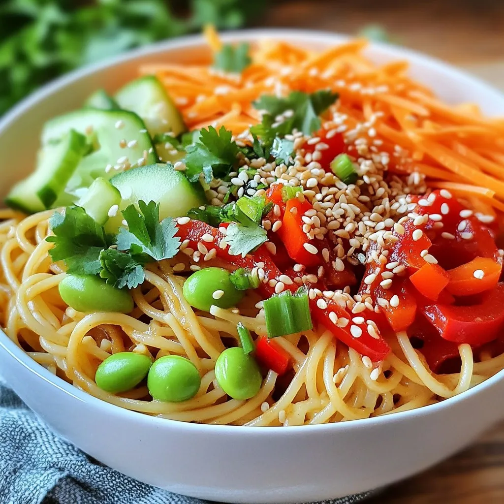 Garnishes like sesame seeds and cilantro brighten your bowl. They add color and a burst of flavor. This dish is not just tasty; it looks great too! Enjoy making your Sesame Peanut Noodle Bowl with these fresh ingredients.