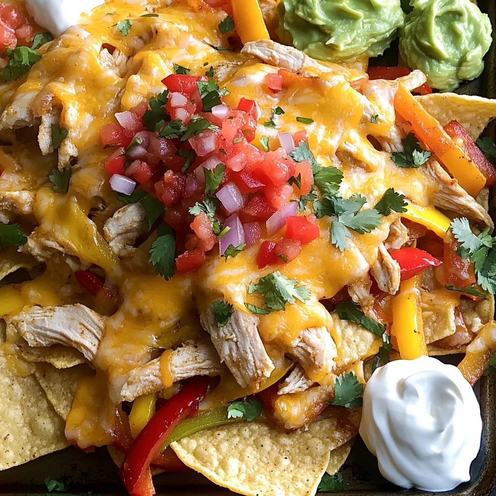 For this dish, you need chicken and colorful veggies. The chicken adds protein, while the bell peppers and onion bring flavor and texture. Tortilla chips serve as the base, making each bite crunchy. I love using a mix of red and yellow bell peppers. They add sweetness and a pop of color.