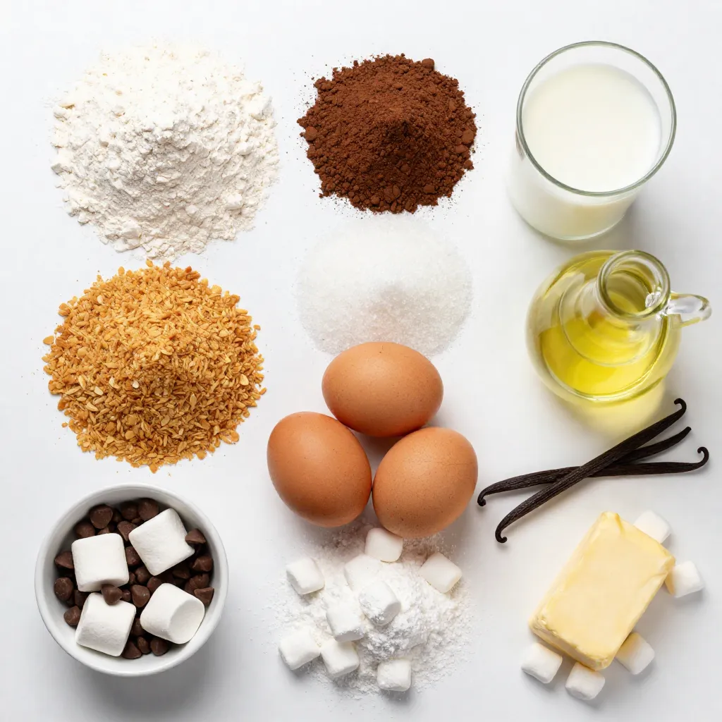 To make these S’mores cupcakes, gather your ingredients first. I love using graham cracker crumbs for that classic S’mores taste. They add a nice crunch and sweetness. The unsweetened cocoa powder gives the cupcakes a rich chocolate flavor, which is a must for any S’mores treat.