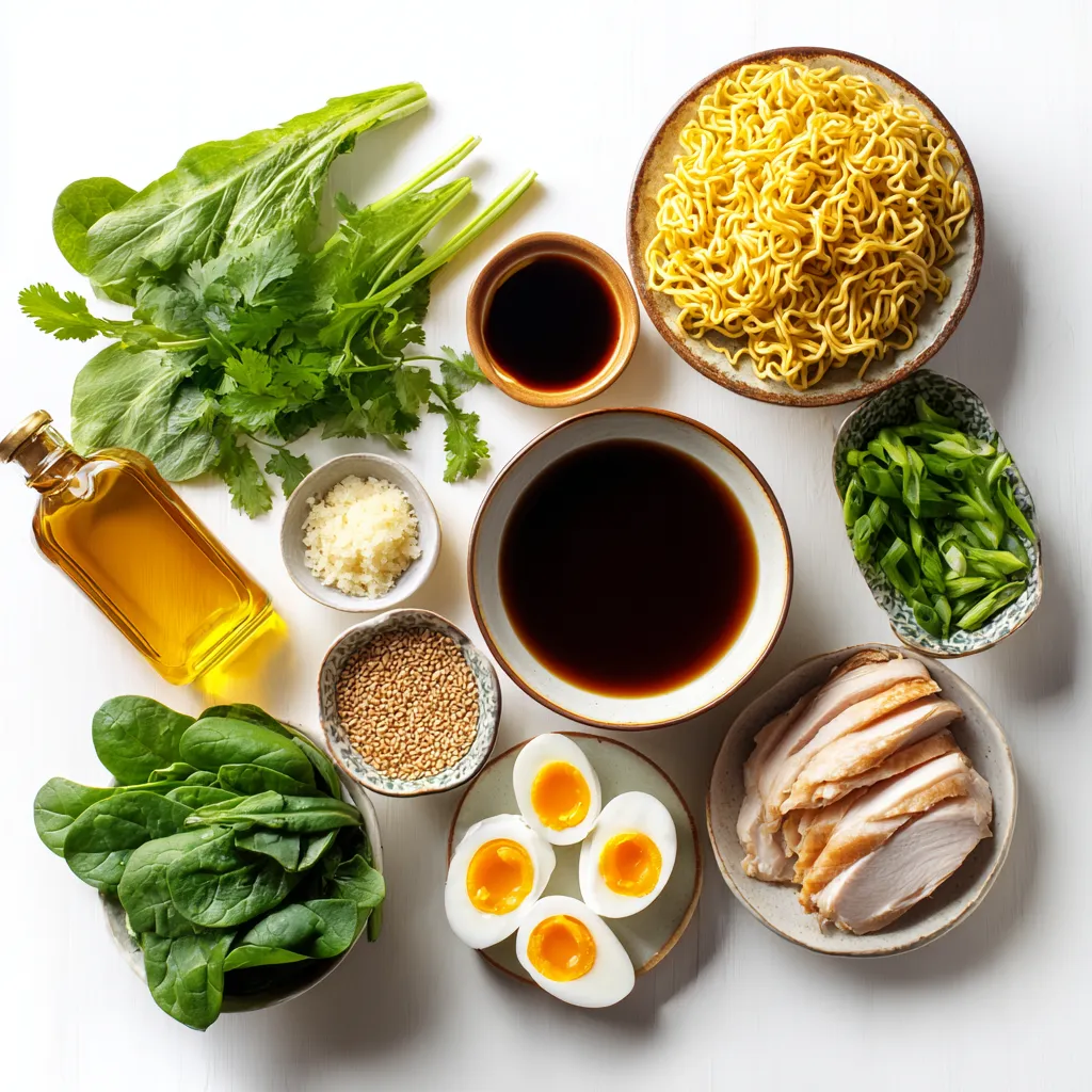 Gathering the right ingredients is key to making a great spicy garlic chicken ramen. You want fresh chicken thighs for juiciness and flavor. The chicken broth adds depth to your dish, while the garlic and ginger bring warmth.