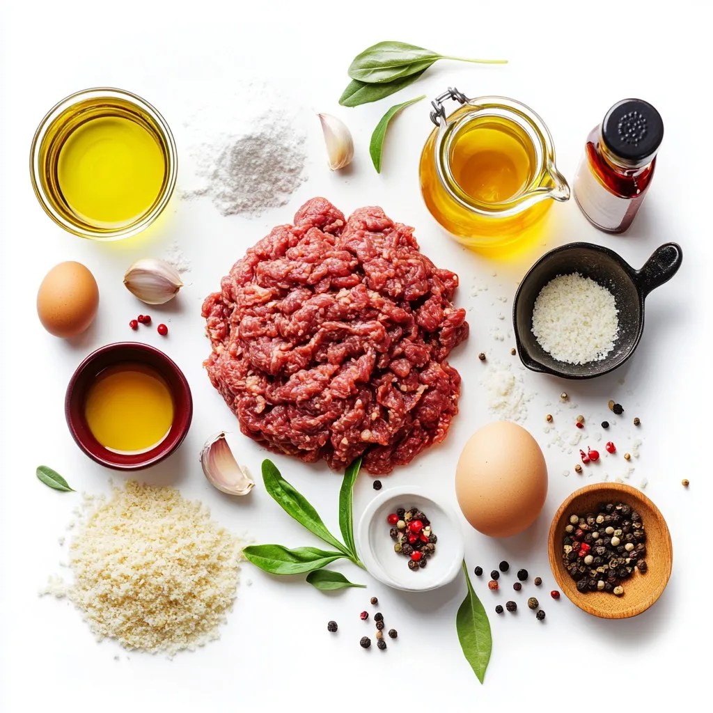 In a large bowl, combine 1 pound of ground beef, 1/2 cup of breadcrumbs, and 1/4 cup of grated Parmesan cheese. Add 1 large egg, 2 cloves of minced garlic, 1/2 teaspoon of red pepper flakes, 1 teaspoon of salt, and 1/2 teaspoon of black pepper. Mix all these ingredients until they blend well.