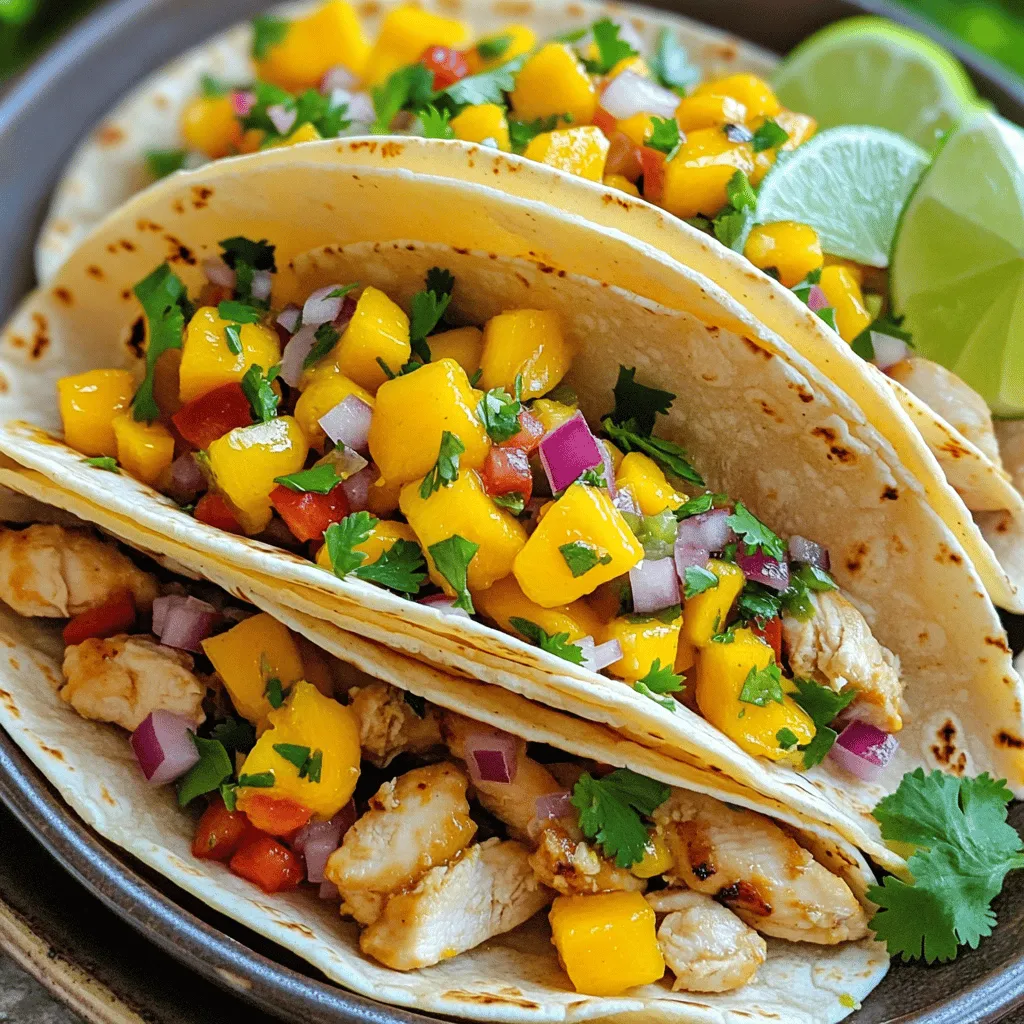 To make Spicy Mango Chicken Tacos, follow these steps: