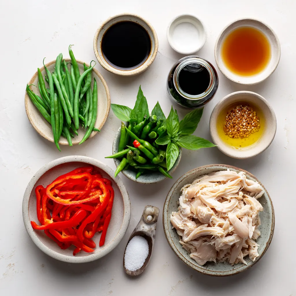 The chicken breast is the star here. I prefer it thinly sliced for quick cooking. The garlic adds a punch of flavor. Bird’s eye chilies bring heat—you can use less if you like it milder. I love the sweetness of the red bell pepper and the crunch of green beans. Fresh Thai basil gives the dish its signature taste, so don’t skip it!
