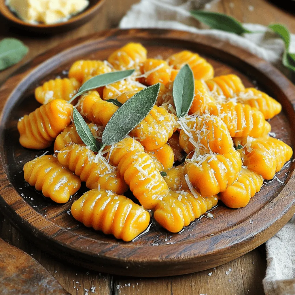 - 2 large sweet potatoes - 1 ½ cups all-purpose flour (plus extra for dusting) - 1 large egg - ½ teaspoon salt - 1 tablespoon olive oil - 6 tablespoons unsalted butter To create sweet potato gnocchi, you need a few simple ingredients. Sweet potatoes give the gnocchi a nice color and flavor. Flour helps bind the dough together. The egg adds richness and helps with texture. Olive oil keeps the dough smooth. Finally, unsalted butter is key for that rich, nutty taste when making the sage butter. - Grated Parmesan cheese - Freshly ground black pepper - Extra sage leaves for presentation Garnishes make your dish pop! Grated Parmesan cheese adds a salty kick. Freshly ground black pepper brings a hint of spice. Extra sage leaves not only look great but also enhance the flavor. Use these garnishes to make your sweet potato gnocchi shine on the plate. Preheat your oven to 400°F (200°C). This heat helps the sweet potatoes cook well. Prick the sweet potatoes with a fork. Place them on a baking sheet. Roast for 45 minutes to 1 hour. You know they are done when they feel soft. Allow them to cool. Then, peel and mash the flesh until smooth. In a large bowl, combine the mashed sweet potatoes, flour, egg, and salt. Mix until a soft dough forms. If the dough feels sticky, add more flour. You want it soft but not too sticky. Divide the dough into four equal pieces. On a floured surface, roll each piece into a long rope. Each rope should be about ½ inch thick. Cut the rope into 1-inch pieces. Use a fork to press down on each piece. This creates ridges that hold the sauce better. Bring a large pot of salted water to a boil. Carefully drop the gnocchi into the water. Do this in batches so they don't stick together. Cook until they float to the surface, about 2-3 minutes. Use a slotted spoon to take them out and place them on a plate. In a frying pan over medium heat, melt the butter. Once the butter is melted, add the sage leaves. Cook until the butter is lightly browned and sage is crispy, about 3-5 minutes. Remove the pan from heat. Gently add the cooked gnocchi to the sage butter. Toss them to coat well in the butter. Let them cook together for one more minute. Finally, transfer them to serving plates. Top with grated Parmesan and black pepper. Enjoy your sweet potato gnocchi! To make great gnocchi, you need the right texture. The dough should be soft but not sticky. If your dough feels sticky, simply add a bit more flour. Start with a tablespoon at a time until it feels just right. If it’s too dry, add a little water or extra egg. You can boost flavor by adding spices. Try mixing in nutmeg or cinnamon for warmth. Fresh herbs like thyme or rosemary also work well. If you want a sauce change, consider using pesto or marinara. They can add a new twist to your dish. For plating, use a rustic wooden board or a simple white plate. This helps the colors pop. Add extra sage leaves around the gnocchi for a nice look. A light sprinkle of Parmesan cheese can add a touch of class. Drizzle some sage butter around the plate to make it inviting. {{image_2}} You can change the sweet potatoes to other veggies. Try butternut squash or pumpkin. These will give a nice flavor, too. If you need gluten-free options, use gluten-free flour. You can find many brands that work well for gnocchi. Adding cheese to the dough makes it richer. Try ricotta or Parmesan for a creamy touch. You can also switch up the herbs in the sage butter. Basil or thyme can add a fresh twist. Mix and match to find your favorite flavor. In fall, add spices like nutmeg or cinnamon. They will warm up the dish perfectly. You can also toss in seasonal veggies, like spinach or kale. These add color and nutrients to your meal. Enjoy experimenting with flavors throughout the year! To keep your sweet potato gnocchi fresh, store leftovers in an airtight container. Place it in the refrigerator. It will last about three days. When you're ready to enjoy it again, reheat the gnocchi in a pan over medium heat. Add a splash of water or a bit of olive oil to keep it moist. Stir often until it’s heated through. You can also microwave it in a bowl with a damp paper towel for about one to two minutes. If you want to freeze uncooked gnocchi, place the shaped gnocchi on a floured baking sheet. Make sure they don’t touch each other. Freeze them for about an hour until firm. After that, transfer the gnocchi to a freezer bag. They will stay good for up to three months. To cook frozen gnocchi, do not thaw them first. Just drop them directly into boiling salted water. Cook until they float, which takes about three to four minutes. This keeps them soft and tasty. Yes, you can make sweet potato gnocchi ahead of time. After you shape the gnocchi, you can freeze them. Place them on a baking sheet in a single layer. Once frozen, transfer them to a bag. This way, you can cook them later without losing flavor or texture. You will know the gnocchi is done when they float to the surface of the water. This usually takes about 2-3 minutes. If you want to check further, you can taste one. It should be soft and light. Yes, you can use other types of flour. If you want a gluten-free option, try using rice flour or a gluten-free blend. Just remember that different flours can change the texture. You may need to adjust the amount of flour used. Sweet potato gnocchi pairs well with many dishes. You can serve it with roasted vegetables, a fresh salad, or some grilled chicken. It also goes great with a light cream sauce or a tomato-based sauce. Feel free to get creative! To get rid of moisture, after cooking, let the sweet potatoes cool. Then, mash them well. You can also spread them on a clean kitchen towel to absorb extra moisture. This helps your gnocchi hold together better. This guide covered the essentials to make sweet potato gnocchi. We discussed key ingredients like sweet potatoes and flour, along with optional garnishes. You learned to preheat the oven, roast sweet potatoes, and 