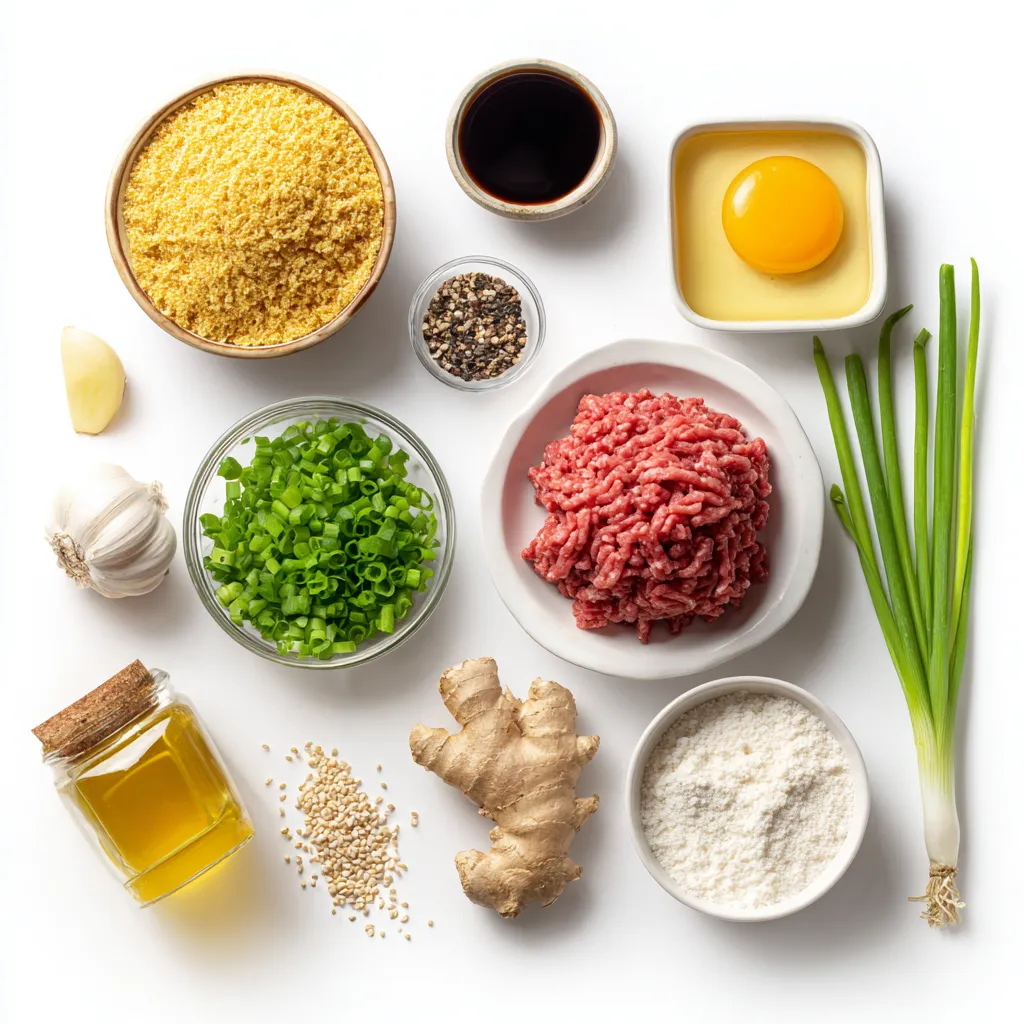 In a large bowl, combine the ground meat, breadcrumbs, minced green onion, grated ginger, minced garlic, beaten egg, black pepper, and salt. Mix until just combined.