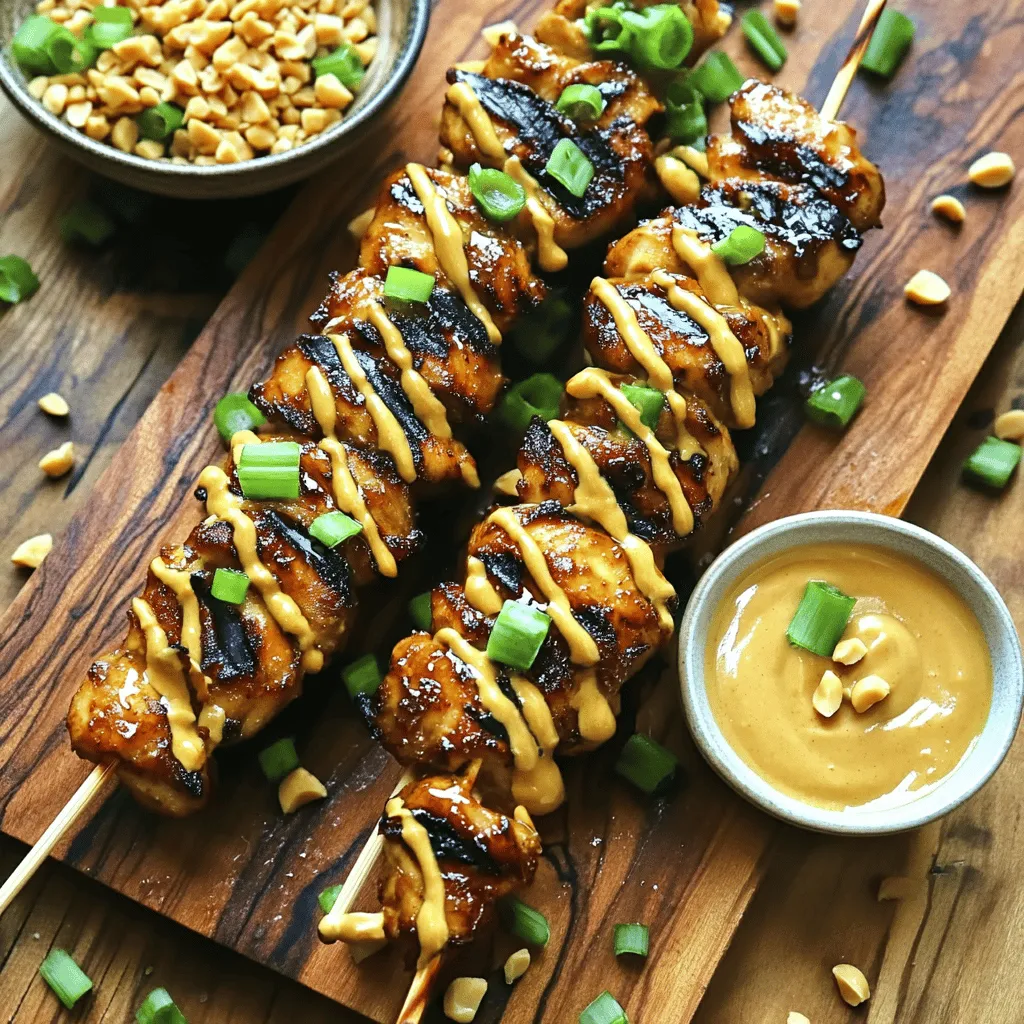– To finish your dish, consider garnishing with chopped green onions or crushed peanuts. These add color and crunch. You can also serve the skewers with extra peanut sauce for dipping. It enhances the flavors and makes for a fun meal.
