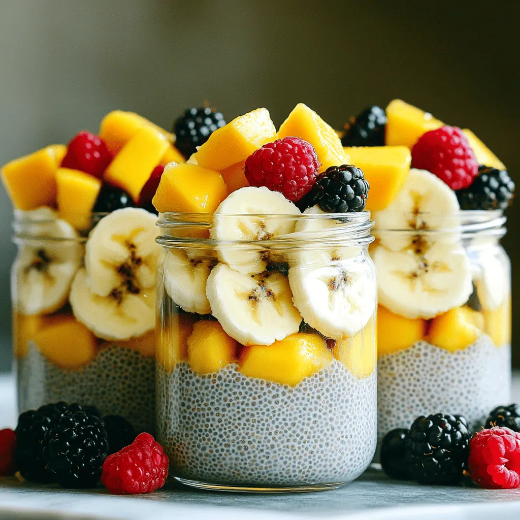 - 1/2 cup chia seeds - 2 cups almond milk (or any preferred milk) - 2 tablespoons maple syrup (or honey) - 1 teaspoon vanilla bean paste (or 1 vanilla bean, split and scraped) - A pinch of salt - Fresh fruits for topping (e.g., berries, banana, mango) - Nuts for crunch - Granola for texture - Mixing bowl - Whisk or spoon - Plastic wrap or lid - Serving bowls or jars Chia seeds are the star of this dish. They soak up the milk and thicken into a pudding. I love using almond milk, but any milk works. You can choose maple syrup or honey for sweetness. Vanilla bean paste gives a rich flavor, but a fresh vanilla bean is great too. Always add a pinch of salt to enhance the taste. For toppings, fresh fruits like berries, bananas, or mangoes add color and taste. If you want extra crunch, try adding nuts or granola. These ingredients make your pudding not just tasty but also healthy. In terms of equipment, you'll need a mixing bowl to combine everything. A whisk or spoon helps mix the ingredients well. Cover your bowl with plastic wrap or a lid, then refrigerate. When it’s ready, serve it in bowls or jars for a lovely presentation. In a large mixing bowl, combine the following ingredients: - 1/2 cup chia seeds - 2 cups almond milk - 2 tablespoons maple syrup - 1 teaspoon vanilla bean paste - A pinch of salt Whisk the mixture thoroughly until it is smooth. This ensures that the chia seeds blend well with the milk and sweetener. You want no clumps of chia seeds at this stage. After mixing, allow the mixture to sit for about 5 minutes. This helps the chia seeds start absorbing the liquid. Stir the mixture again to break up any clumps that form. Then, cover the bowl with plastic wrap or a lid. Refrigerate for at least 4 hours or overnight for the best results. The chia seeds will soak up the liquid and turn into a creamy pudding. Once your pudding is ready, take it out of the refrigerator and stir it well. This will make it nice and smooth again. Serve it in bowls or jars. You can top it with fresh fruits like berries, bananas, or mangoes for a burst of flavor. If you want some crunch, add nuts or granola on top. Enjoy this easy and healthy delight! Whisking is key to avoiding clumps in your chia pudding. Start strong! Mix all ingredients well. The chia seeds need to blend evenly with the milk and sweetener. After whisking, let the mixture rest for about 5 minutes. This gives the seeds a chance to soak up some liquid. Stir again to break up any clumps. For the best pudding, refrigerate it for at least 4 hours or overnight. This allows the chia seeds to fully expand and create a smooth texture. Want to mix it up? You can add extra flavors! Cocoa powder gives a rich chocolate taste. A sprinkle of cinnamon adds warmth. If you like it sweeter, add more maple syrup or honey. For a lighter taste, use less sweetener. Taste as you go, so you create your perfect blend of flavors. Make your chia pudding look special! Layer it in clear jars for a beautiful view. Add fresh fruits like berries or banana on top. This not only makes it pretty but adds color and taste. A drizzle of maple syrup on top will make it even sweeter. These little touches will impress anyone you serve! {{image_2}} You can make this pudding dairy-free by swapping almond milk for other options. Try coconut milk for a rich taste. Oat milk is another great choice with a mild flavor. For sweetening your pudding, maple syrup works well, but you can use agave nectar too. If you want a low-calorie option, try stevia. It adds sweetness without the calories. Want a chocolate chia pudding? Just mix in two tablespoons of cocoa powder. It gives a rich taste that you will love. Fruit-infused variations are fun too! Use fresh strawberries, mango, or blueberries. Blend them into the mix or layer them on top for a bright, colorful treat. Add different nuts for a crunchy bite! Almonds, walnuts, or pecans work great. Just chop them up and sprinkle them on top. You can also mix in yogurt for creaminess. Greek yogurt adds protein and makes the pudding even more delicious. Just stir it in before serving. Vanilla bean chia pudding lasts about 5 days in the fridge. Store it in a sealed glass jar. This keeps it fresh and tasty. You can also use plastic containers, but glass is best for flavor. To freeze chia pudding, spoon it into freezer-safe jars. Leave some space at the top for expansion. Seal tightly and freeze. For the best taste, eat it within 2 months. To thaw, place the jar in the fridge overnight. Stir well before serving. Chia pudding can spoil. Look for changes in smell or texture. If it smells sour or has a strange color, it's time to toss it. Always trust your senses when deciding if it's safe to eat. The chia pudding needs at least four hours to set. I often leave mine overnight for the best results. The chia seeds absorb the liquid and swell up. This creates a thick, creamy texture. Make sure to stir the mixture after five minutes. This helps break up any clumps that form before it goes into the fridge. Yes, you can use regular milk if you prefer. Whole milk or skim milk works well too. Almond milk adds a nutty flavor and is dairy-free. You can also try oat milk or coconut milk for different flavors. Each option gives the pudding a unique taste, so feel free to experiment. Chia pudding is very healthy. Chia seeds are packed with fiber, protein, and omega-3 fatty acids. They help keep you full and support digestion. The seeds also have antioxidants, which are good for your body. Plus, you can add fresh fruits on top, making it even more nutritious. Chia pudding is easy and versatile. You learned to make it using simple ingredients like chia seeds and almond milk. We discussed how to prepare, rest, and serve it for the best taste. Options like adding fruits or nuts make it even better. In the end, don’t be afraid to explore your own flavors and textures. Enjoy your delicious, healthy chia pudding!