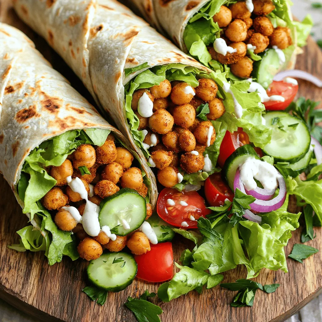 When assembling your wraps, layer your ingredients smartly. Start with a base of lettuce. This helps catch any juices from the veggies. Add the chickpeas next, followed by tomatoes, cucumbers, and onions. Drizzle tahini sauce over everything. This adds creaminess and flavor. Be careful not to overfill. Leave some space at the edges to fold the wrap. Fold the sides over the filling first, then roll from the bottom. This keeps everything inside. If you want a crispy finish, toast the wraps in a hot skillet for a minute on each side.