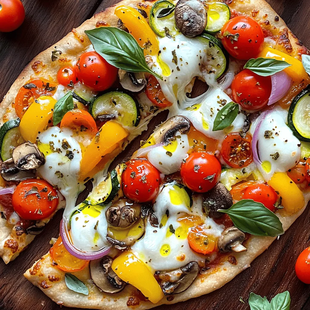 ![To make Veggie Lovers Flatbread Pizza, gather these items: - 2 large pieces of whole wheat flatbread - 1 cup pizza sauce (store-bought or homemade) - 1 cup fresh mozzarella cheese, shredded - 1/2 cup bell peppers (red, green, and yellow), thinly sliced - 1/2 cup cherry tomatoes, halved - 1 small zucchini, thinly sliced - 1/2 cup red onion, thinly sliced - 1/2 cup mushrooms, sliced - 1/4 teaspoon dried oregano - 1/4 teaspoon crushed red pepper flakes (optional) - Fresh basil leaves for garnish - Olive oil for drizzling - Salt and pepper to taste This flatbread pizza is not just tasty, but also healthy. Each serving gives you: - Calories: 250 - Protein: 12g - Carbohydrates: 30g - Fiber: 4g - Fat: 10g - Vitamin C: 25% of your daily value - Calcium: 15% of your daily value You get a good amount of veggies and cheese in each bite. Choosing fresh veggies makes your pizza even better. Here are some tips: - Look for bright colors. This shows freshness. - Check for firmness. Soft or wrinkled veggies aren't fresh. - Smell them. Fresh veggies should smell good, not sour. - Buy organic when possible. It often means fewer chemicals. Using fresh veggies not only boosts flavor but also adds nutrition to your meal. Enjoy your cooking! 1. Preheat your oven to 450°F (232°C). This step helps the cheese melt nicely. 2. Place the flatbreads on a baking sheet or pizza stone. Make sure they are flat. 3. Spread pizza sauce evenly on each flatbread. Leave a small edge for crust. 4. Sprinkle shredded mozzarella cheese over the sauce. This is the base for your toppings. 5. Layer the veggies on top of the cheese. Start with bell peppers, then zucchini, red onion, cherry tomatoes, and mushrooms. 6. Add dried oregano and crushed red pepper flakes for flavor. Don’t forget a pinch of salt and pepper. 7. Drizzle some olive oil over the flatbreads. This adds a nice touch of flavor. 8. Bake your flatbreads in the oven for 10-12 minutes. Watch for bubbly cheese and golden edges. 9. Once done, take the flatbreads out of the oven. Let them cool for a minute. 10. Garnish with fresh basil leaves for a burst of color and flavor. 11. Slice your pizza into pieces and serve warm. Enjoy every bite! - Use fresh mozzarella for the best melt. It gives a creamy texture. - Shred your cheese instead of using slices. Shredded cheese melts faster and more evenly. - Bake at the right temperature. This helps the cheese bubble and brown perfectly. - Keep an eye on your pizza. Remove it when the cheese is nice and bubbly. For the full recipe, check out the details on Veggie Lovers Flatbread Pizza. To make your veggie lovers flatbread pizza stand out, focus on fresh ingredients. Fresh veggies bring bright flavors. I love using a mix of peppers for color and taste. Also, consider roasting your veggies for a deeper taste. Roasting adds a sweet and smoky touch. Don’t skip the olive oil drizzle! It helps meld the flavors and keeps the crust crisp. Many people overload their flatbreads with toppings. This can make them soggy. Instead, use just enough veggies to keep it balanced. Another mistake is not preheating the oven. A hot oven gives you that perfect crispy crust. Also, be careful with salt. Too much can overpower the fresh flavors. Use it sparingly and taste as you go. Always start with a good base. Whole wheat flatbread is great for taste and texture. Make sure to spread the sauce evenly. This helps every bite burst with flavor. When layering toppings, start with cheese, then add veggies. This keeps the cheese gooey and the toppings fresh. Finally, let your pizza rest for a minute after baking. This allows the cheese to set and makes slicing easier. For the full recipe, check out the details above. {{image_2}} You can mix up the veggies on your flatbread pizza. Try using spinach, artichokes, or broccoli. Each choice adds a new taste. You can also switch the bell peppers for roasted red peppers. They give a sweet flavor. For a fun twist, add some olives or sun-dried tomatoes. This variety keeps your pizza exciting every time you make it. Want to make your flatbread pizza heartier? Consider adding protein. Grilled chicken or turkey works great. You can also try crumbled feta or goat cheese for a tangy kick. If you love seafood, shrimp or anchovies can be tasty options. Just sprinkle them over the top with the veggies. This gives you a filling meal that still tastes fresh. If you need a gluten-free option, many brands offer gluten-free flatbreads. Look for ones made from almond or rice flour. These can be just as tasty as regular flatbreads. You can also make your own flatbread using gluten-free flour. This way, you control the ingredients. Just follow a simple recipe for a great base. This ensures everyone can enjoy your veggie lovers flatbread pizza. For the complete recipe, check [Full Recipe]. To keep your veggie lovers flatbread pizza fresh, place it in an airtight container. You can also wrap it tightly in plastic wrap or aluminum foil. Store it in the fridge for up to three days. This way, you can enjoy your pizza later without losing its flavor or texture. To reheat your flatbread pizza, preheat your oven to 350°F (177°C). Place the pizza on a baking sheet. Heat for about 10 minutes or until the cheese is bubbly again. You can also use a microwave, but the oven keeps the crust crispy. If using a microwave, heat for about 1-2 minutes, but expect a softer crust. You can freeze your veggie lovers flatbread pizza too. First, let it cool completely. Wrap each piece tightly in plastic wrap, then place them in a freezer bag. Label the bag with the date. You can freeze it for up to two months. When you're ready to eat, thaw it in the fridge overnight, then reheat as usual. This method helps keep your pizza tasty and fresh! To make Veggie Lovers Flatbread Pizza from scratch, you need simple steps. First, preheat your oven to 450°F (232°C). Take two large pieces of whole wheat flatbread and place them on a baking sheet. Spread one cup 