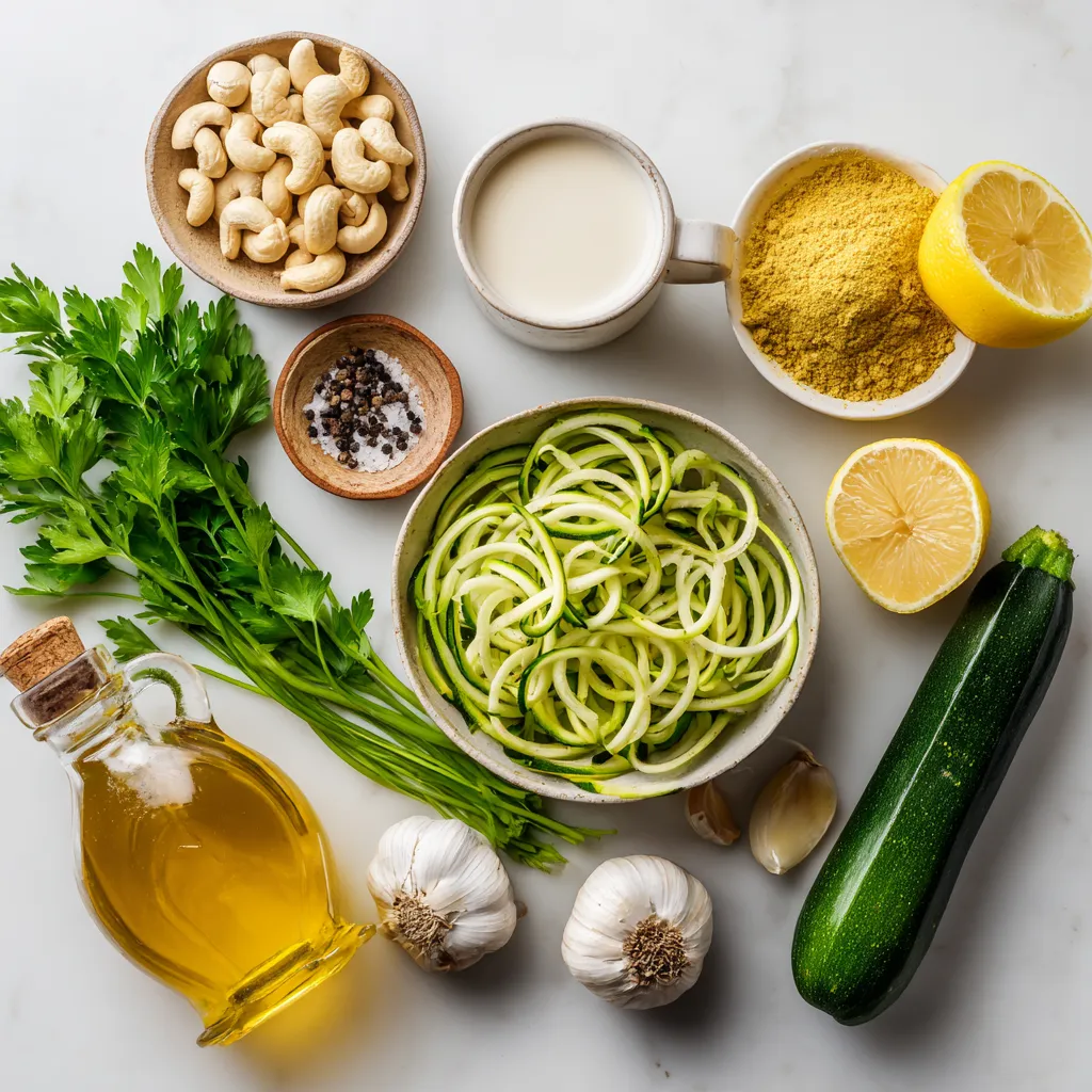 Keyword healthy pasta, vegan alfredo, zucchini noodles